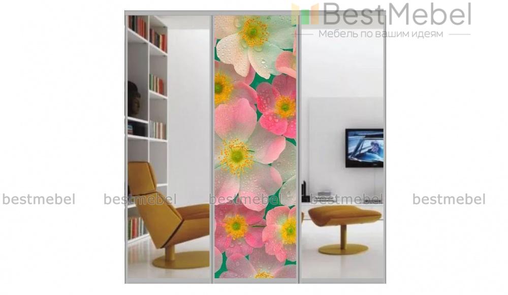 Двери-купе Лето 2 BMS зрительно облегчат пространство и добавят комнате глубины. Композиция для монтажа фасада в шкафу или гардеробной объединила дверь с нежной пастельной фотопечатью и два зеркальных полотна в профиле из алюминия. Износостойкие поверхности устойчивы к повреждениям и действию солнечных лучей, легко очищаются от загрязнений и надолго сохраняют первоначальный внешний вид. Купить двери-купе Лето 2 BMS с индивидуальным подбором размеров вы сможете в нашем интернет-магазине.