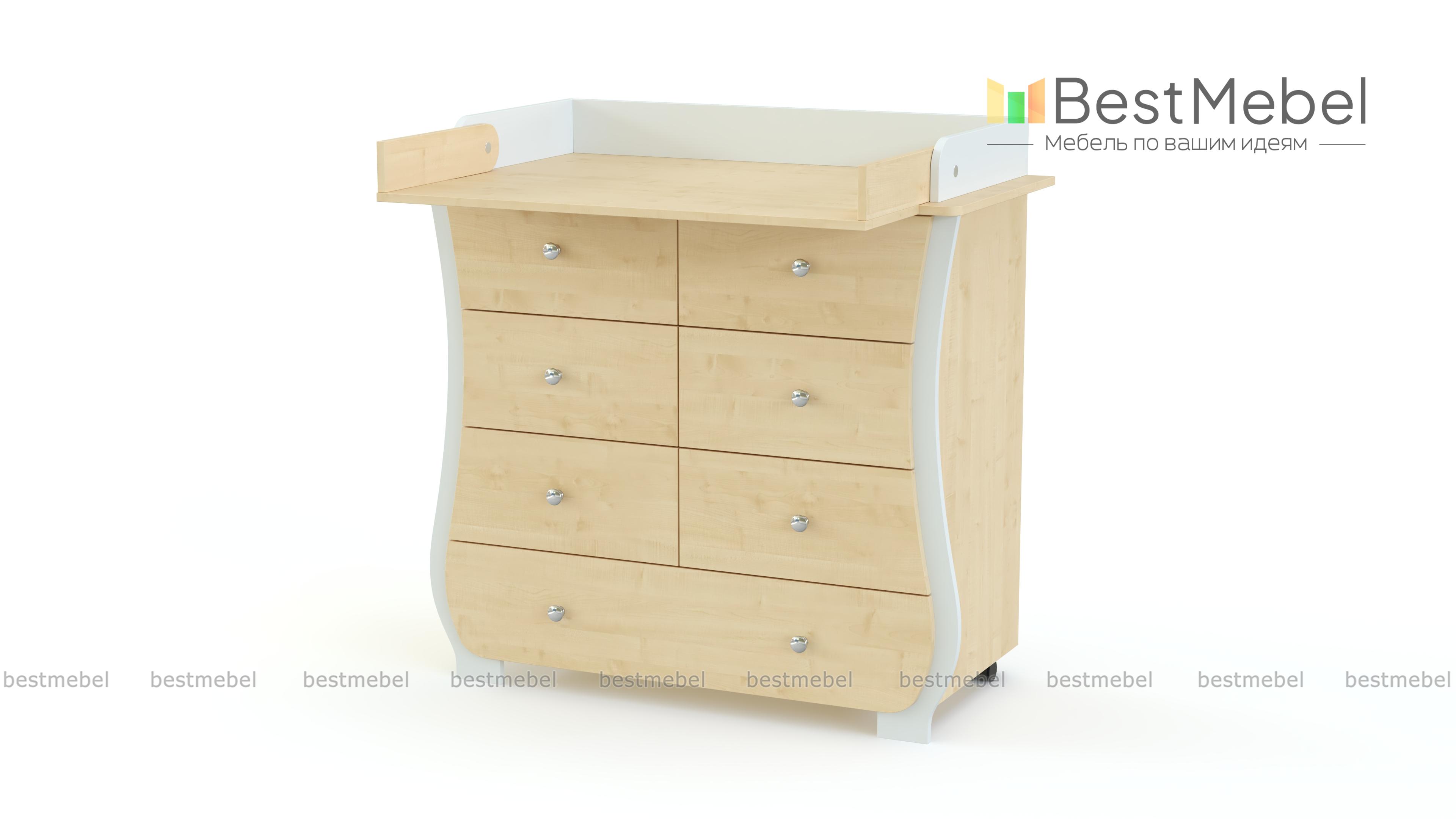 Пеленальный комод Альт 1 BMS с изящно вырезанным фасадом без острых углов украсит современную детскую и сделает уход за малышом комфортным. В одном большом и шести малых выдвижных ящиках, оснащенных ручками-кнопками, удобно хранить средства гигиены, постельное белье, одежду и игрушки. Благодаря откидному столику вы сможете увеличить пеленальную поверхность, а колесики обеспечат комоду легкость перемещения. Купить пеленальный комод Альт 1 BMS приглашаем в наш интернет-магазин, подобрав цветовое решение.
