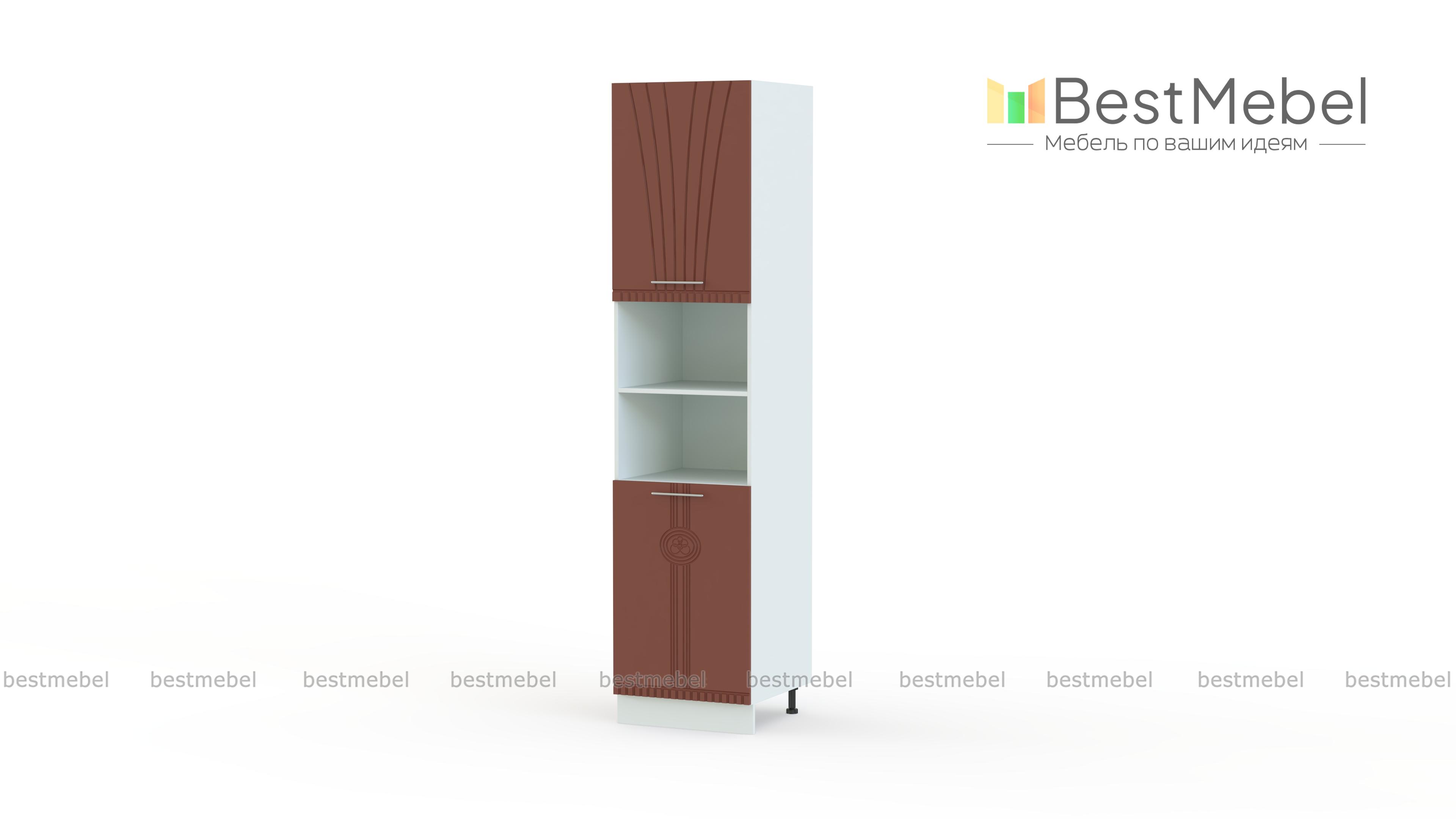 Пенал кухонный Паллада BMS гармонично впишется в просторные помещения и дополнит роскошную меблировку в стиле модерн. Комбинированная модель отличается эргономичным дизайном и оборудована двумя распашными отделениями с полками под продукты и кухонные принадлежности и двумя нишами, удобными для размещения бытовой техники или декоративных предметов. Яркие фасады пенала украшает эффектная фрезеровка, в верхней части расположен рисунок, отличающийся от нижней части фасада. Купить пенал кухонный Паллада BMS по лучшей цене вы сможете в нашем интернет-магазине.