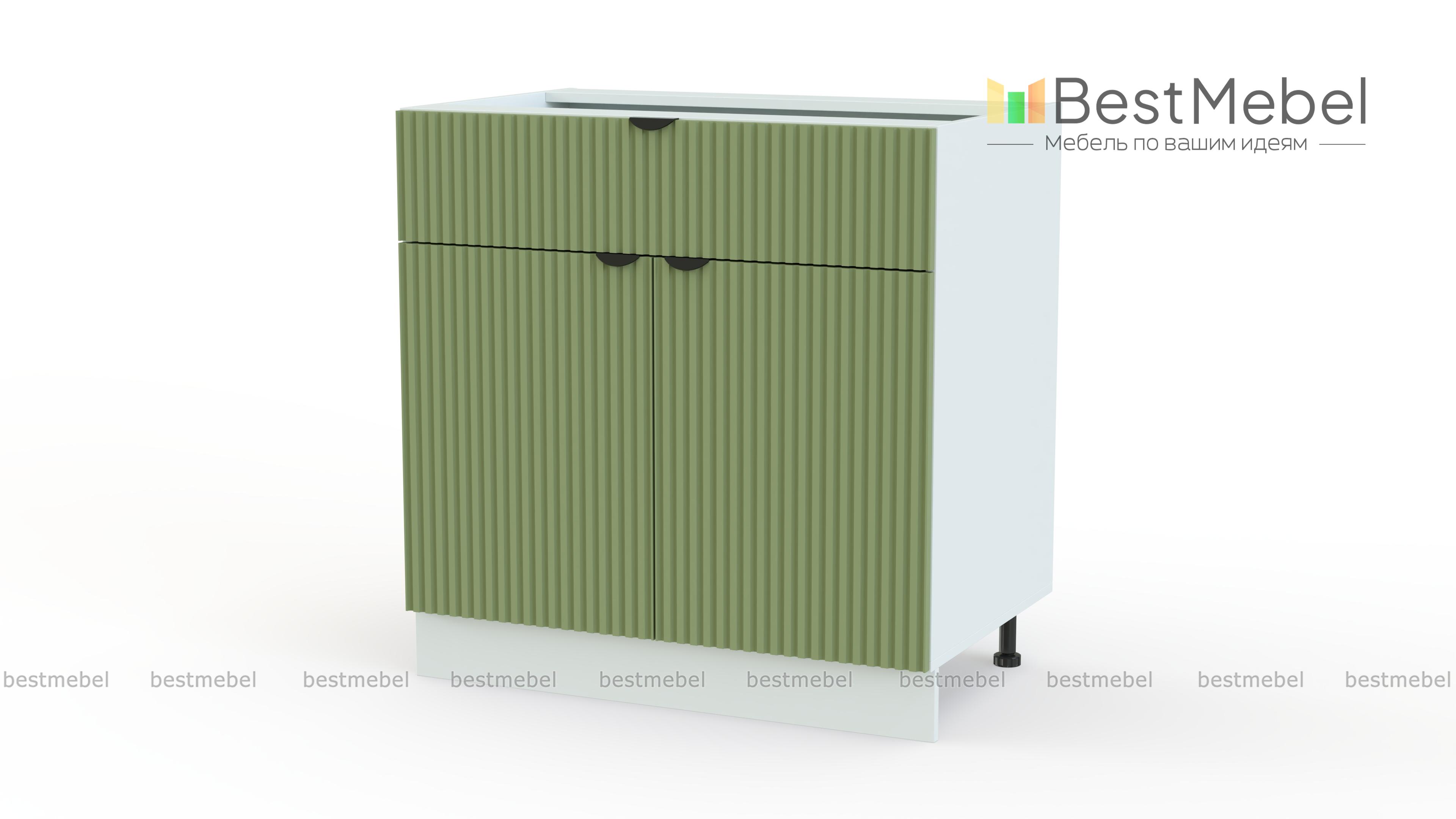 Шкаф нижний с 2-мя дверцами и ящиком Альберт BMS — это классическая кухонная модель с современным дизайном. Светлые рифленые фасады красиво сочетаются с контрастными торцевыми ручками. Для удобного доступа к кухонным мелочам и габаритной посуде тумба оборудована одним широким выдвижным ящиком и двухдверным распашным отделением. Купить шкаф нижний с 2-мя дверцами и ящиком Альберт BMS, изготовленный по вашим размерам, можно на сайте нашего интернет-магазина.