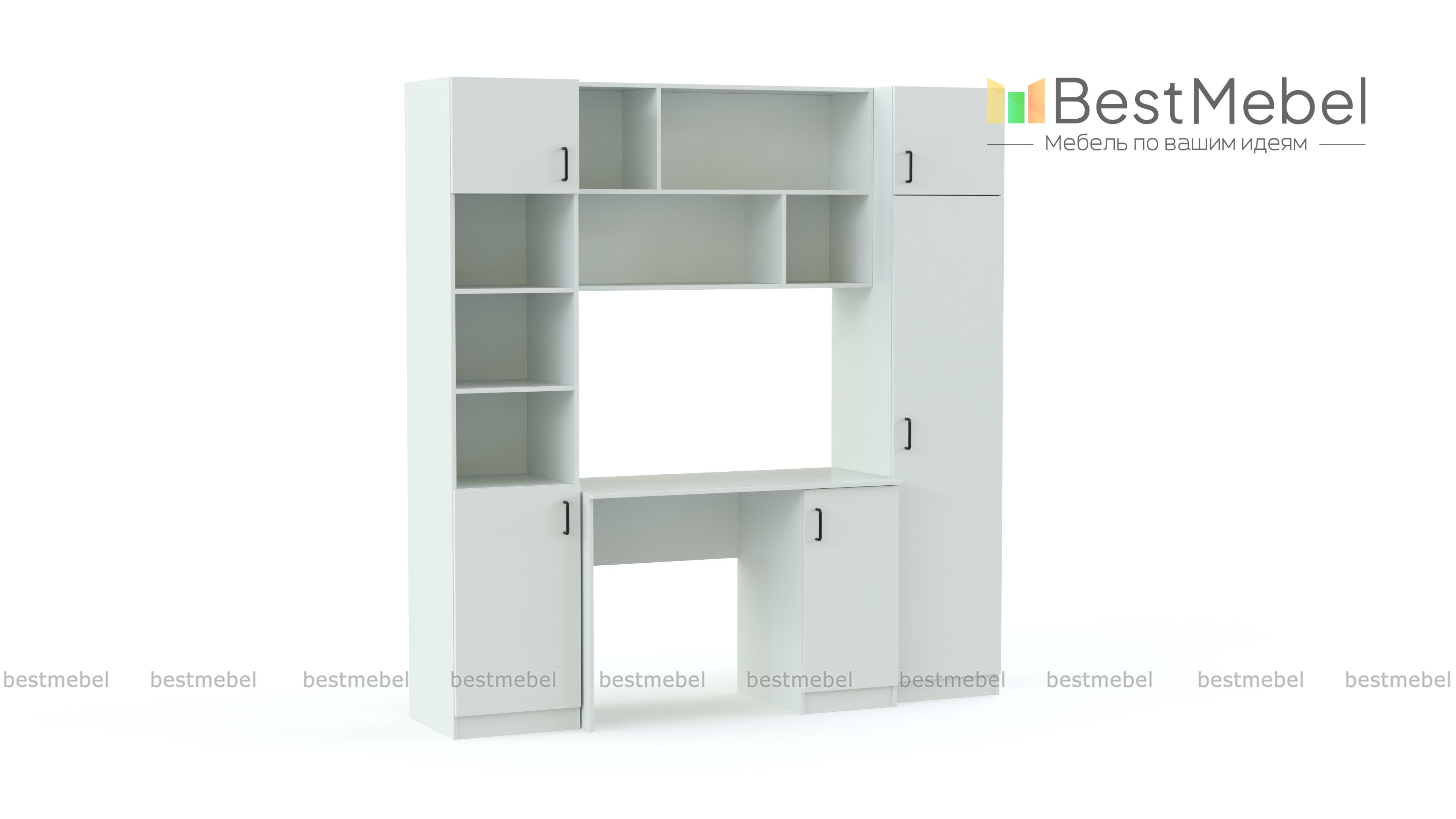 Детская стенка Альтаир 1 BMS - это комфортное место для занятий с удобной системой хранения. Однотумбовый письменный стол дополнен книжной полкой, а по бокам симметрично располагаются пеналы - распашной и комбинированный со стеллажом. Композиция универсального современного дизайна выполнена из качественной ЛДСП, что делает ее безопасной и надежной в эксплуатации. Купить детскую стенку Альтаир 1 BMS вы сможете в нашем интернет-магазине, подобрав фурнитуру и цвет по каталогу.