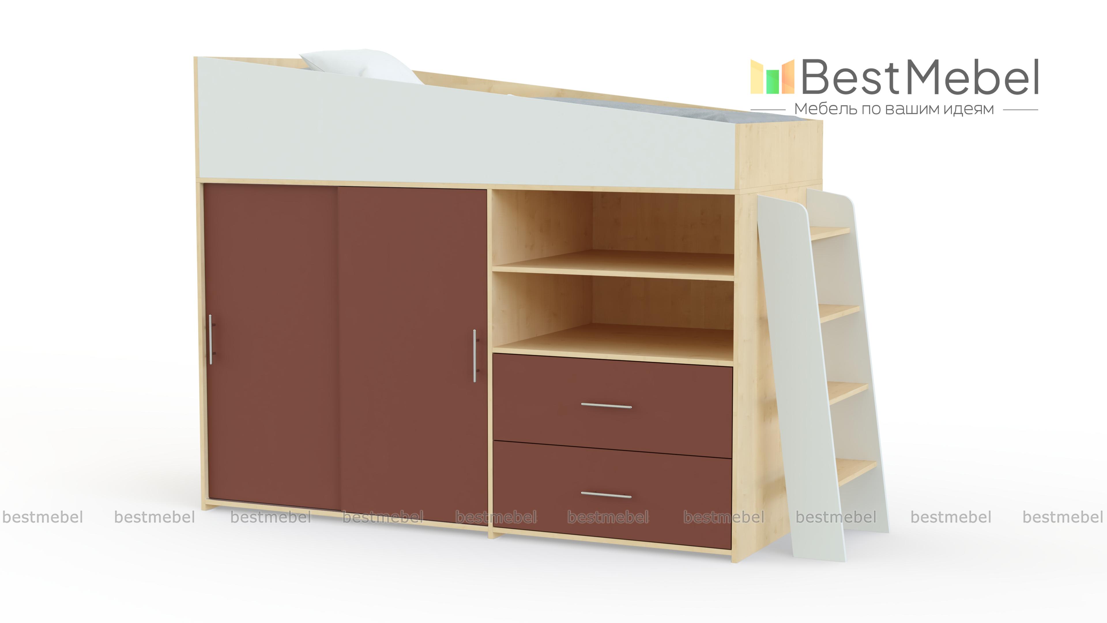 Кровать-чердак Дождик BMS – это надежность, безопасность и высокая функциональность. Модель незаменима в современных малогабаритных квартирах и позволит сэкономить полезную площадь детской комнаты, компактно объединив просторное спальное место с защитными бортиками, шкаф-купе для одежды, открытые полки и вместительные выдвижные ящики для игрушек и постельных принадлежностей. Купить кровать-чердак Дождик BMS по доступной цене приглашаем в наш интернет-магазин.
