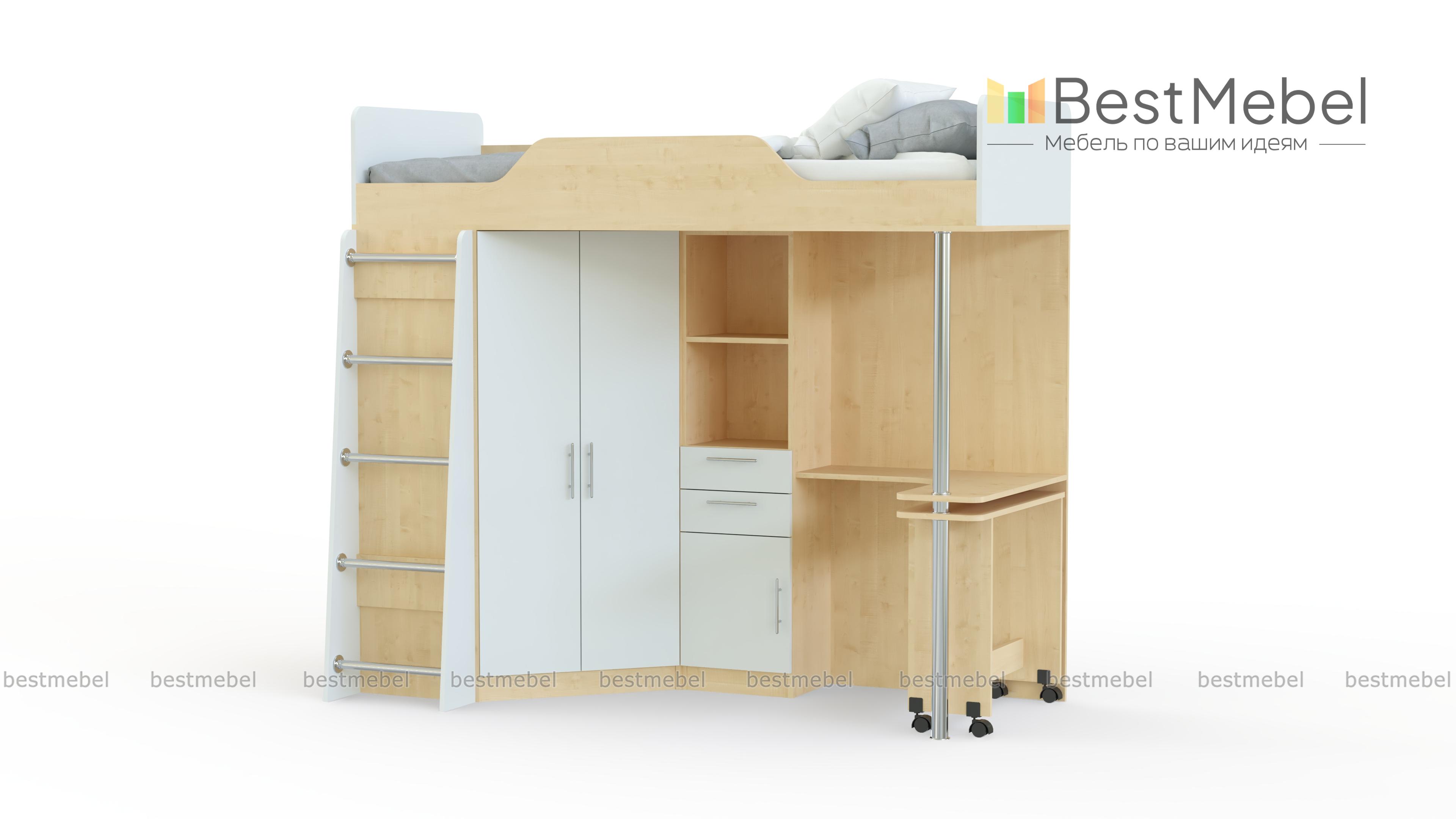 Кровать-чердак со столом Ника 427 BMS – многофункциональная модель, которая станет практичным решением для малогабаритного помещения. Конструкция включает в себя просторное спальное место, оснащенное защитным бортиком, удобную лестницу с хромированными перекладинами, распашной шкафчик с платяным отделением, комбинированный пенал для книг и принадлежностей для школы и творчества и угловой стол с выдвижной секцией. Купить кровать-чердак со столом Ника 427 BMS и оборудовать детскую всем необходимым для комфортного сна, учебы и хранения вещей ребенка, вы сможете с помощью нашего интернет-магазина.