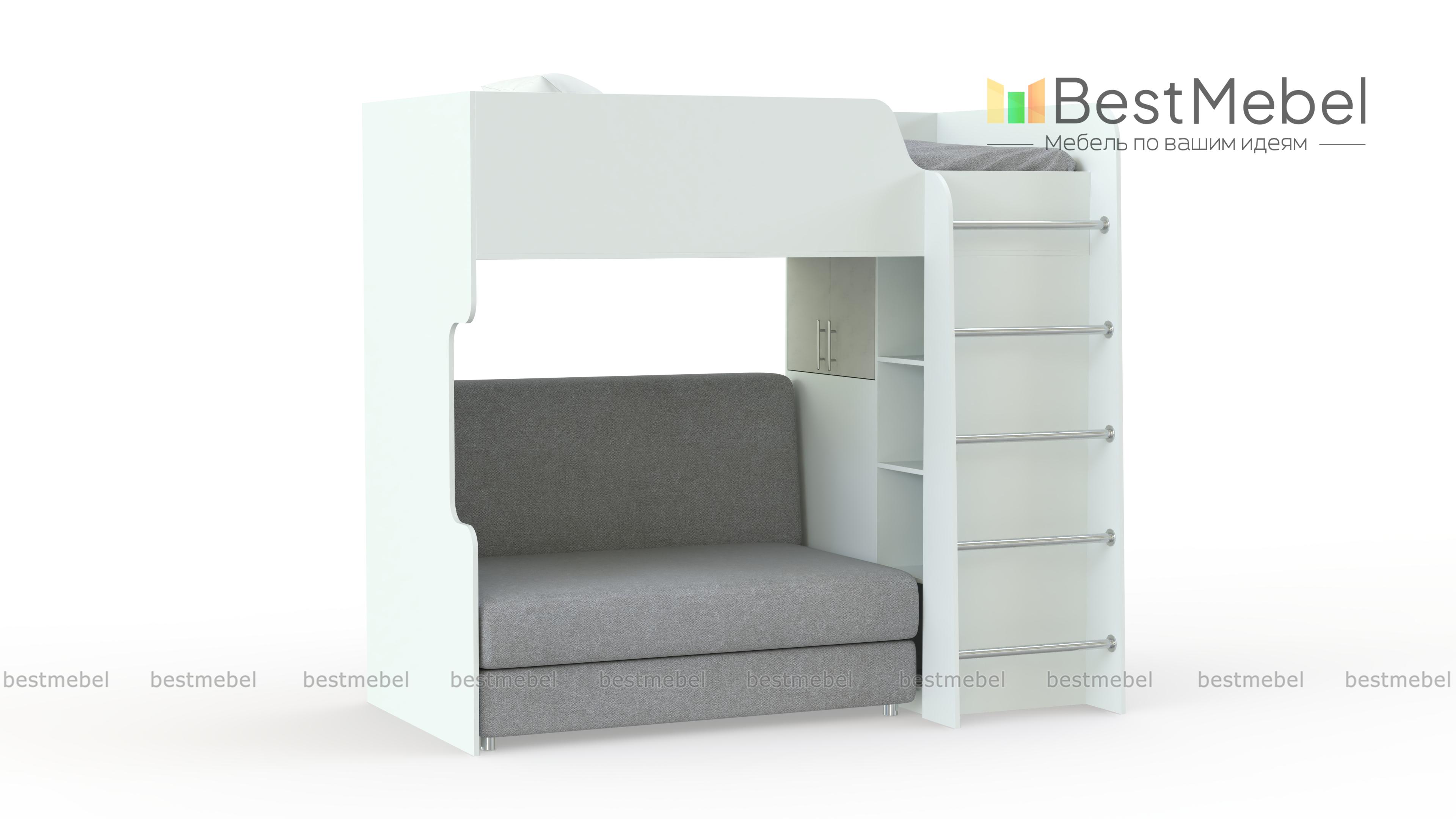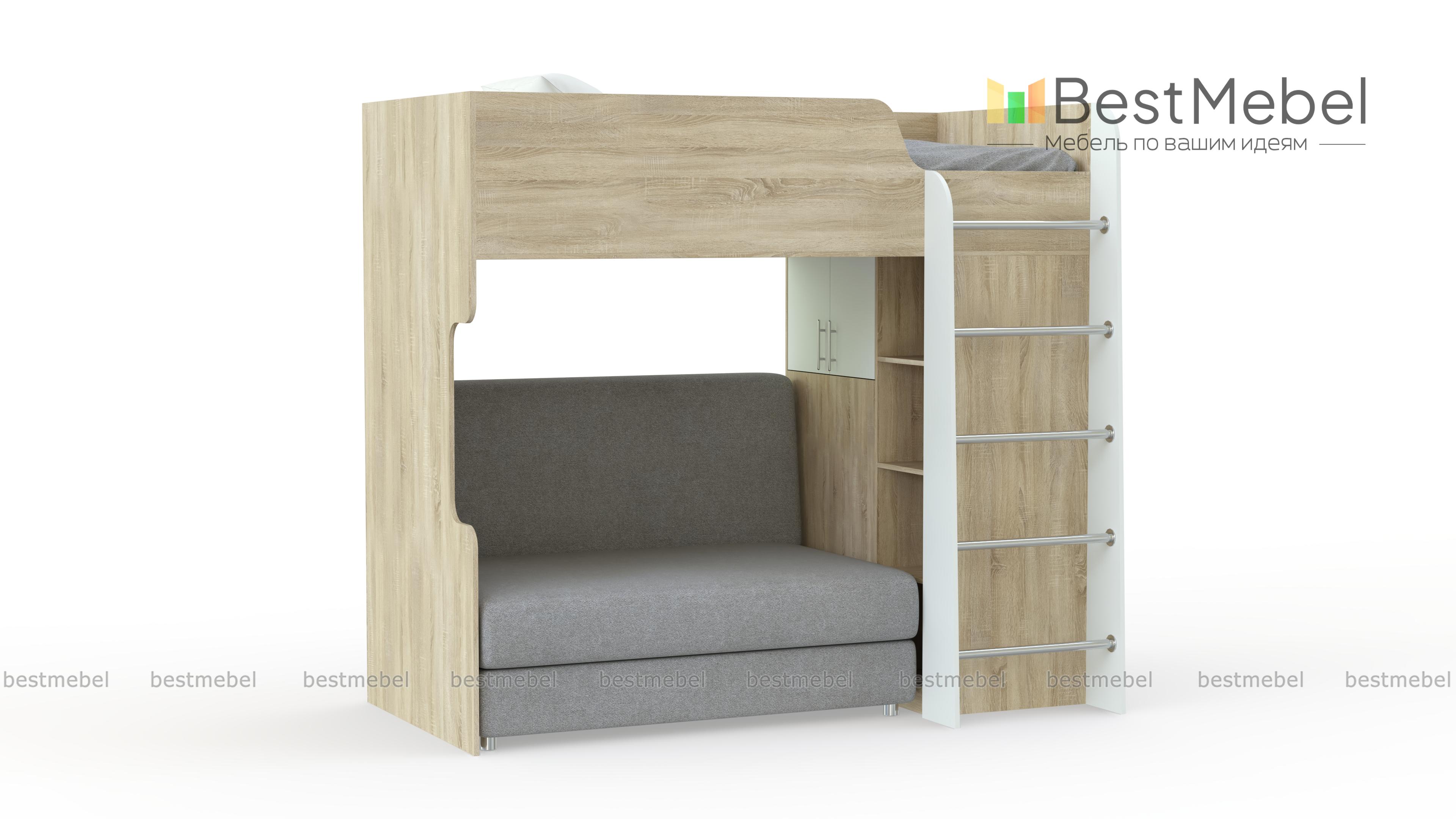 Кровать с диваном Карон 06 BMS оборудована всем самым необходимым для комфортного отдыха и хранения детских вещей. На втором ярусе располагается спальное место с ограничителем, а на первом – распашной шкаф для одежды, книжный стеллаж, лестница с металлическими трубными перекладинами и уютный диван. Несколько ярких цветовых решений на выбор помогут легко вписать модель в современный интерьер. Купить кровать с диваном Карон 06 BMS приглашаем в наш интернет-магазин по доступной цене.