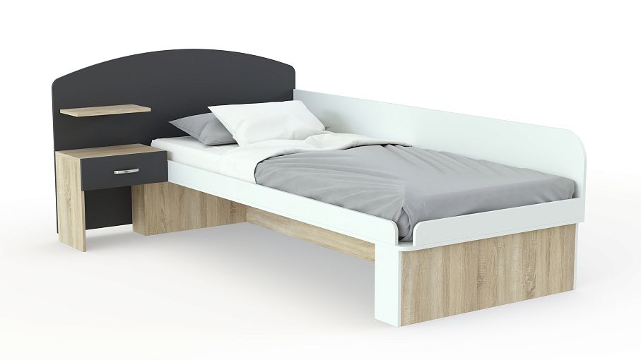 Кровать T-L-22 Ed BMS представляет собой многофункциональную композицию, которая поможет выгодно использовать пространство и гармонично впишется в интерьер детской или подростковой комнаты. Модель, выполненная в сочетании древесных тонов и контрастных элементов, оборудована комфортным спальным местом со скругленным бортиком. Широкая панель в изголовье составляет единое целое с открытой полочкой и тумбой для необходимых под рукой мелочей из одного выдвижного ящика. Купить кровать T-L-22 Ed BMS приглашаем в наш интернет-магазин.