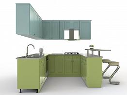 Угловая кухня с барной стойкой Лазурь BMS