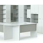 Мебель также способна создать свой удобный уголок со всем необходимым и там, где в кабинете сидит несколько человек. Есть отдельные шкафы для хранения личных вещей. Также в комплект входит угловой шкаф с полочками, где можно разместить сертификаты, дипломы грамоты, награды и все, чем гордится ваша компания.