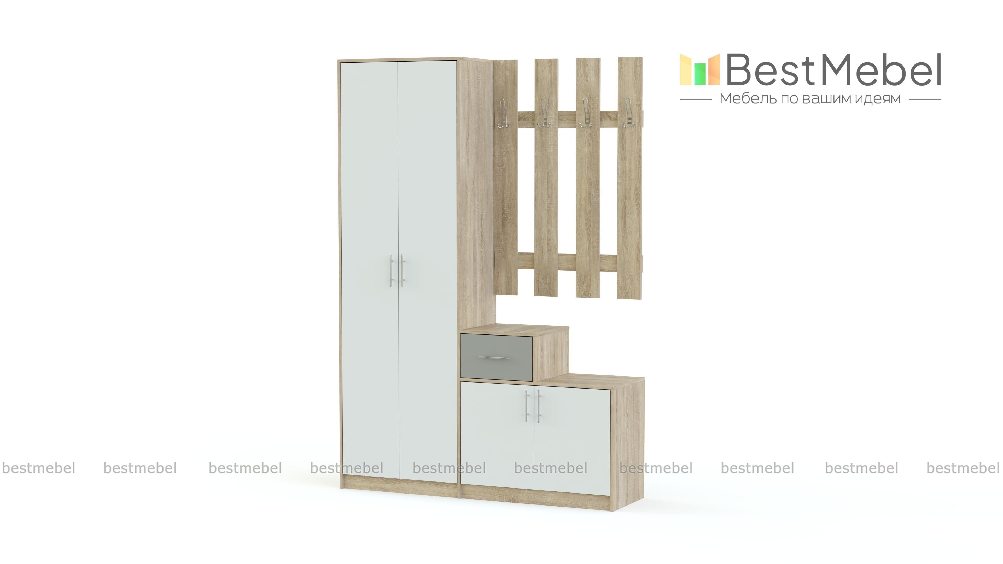 Отличная, современная прихожая. Нравится, что на сайте можно изменить цвет, размер, материал. Подобрали все параметры по размерам нашего коридора. Собирали самостоятельно, благодаря инструкции. В целом довольны.