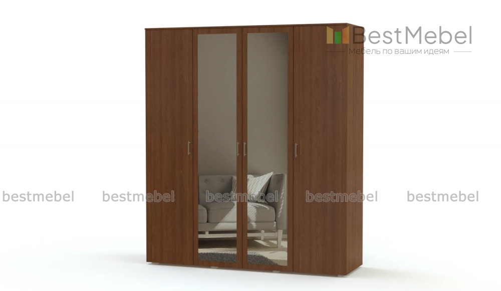Распашной шкаф Скуп 2 BMS поможет вам легко поддерживать порядок в вещах, компактно разместив постельное белье и одежду. Классическая четырехдверная модель с полками и штангой выполнена в насыщенных древесных тонах и дополнена ростовыми зеркалами, визуально облегчающими конструкцию. Распашные створки надежны в эксплуатации и обеспечивают отличный обзор содержимому полок.