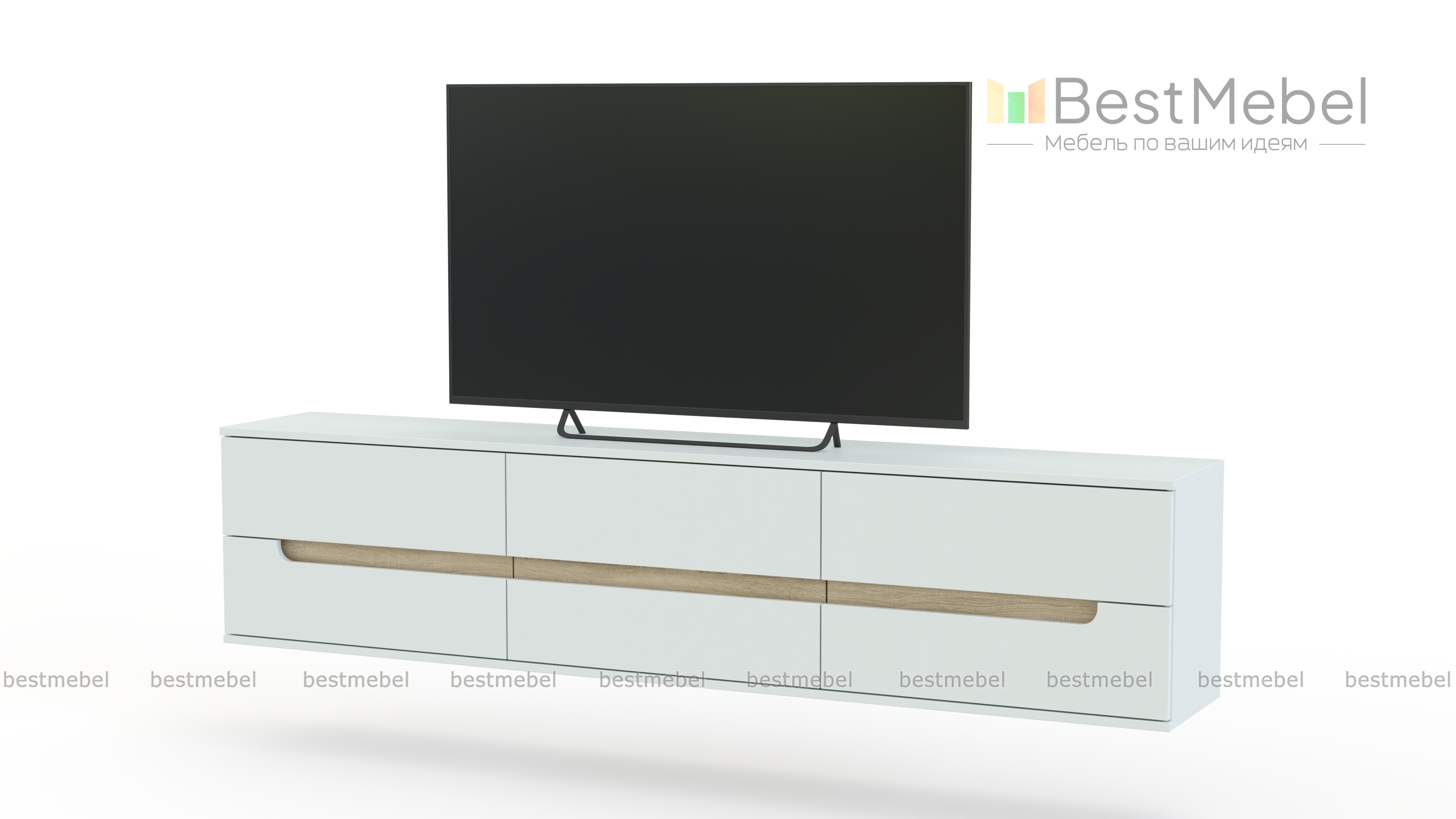 Тумба под ТВ подвесная Лори № 4 BMS поможет оформить уютную телезону в интерьере современной гостиной, спальни или молодежной комнаты. Подвесная конструкция экономно использует пространство и облегчает уборку, а удобная система хранения из шести выдвижных ящиков позволит разместить множество необходимых под рукой мелочей. В оформлении скомбинированы универсальные белые тона и декоративные вставки древесного цвета. Купить тумбу под ТВ подвесную Лори № 4 BMS приглашаем к нам в интернет-магазин.