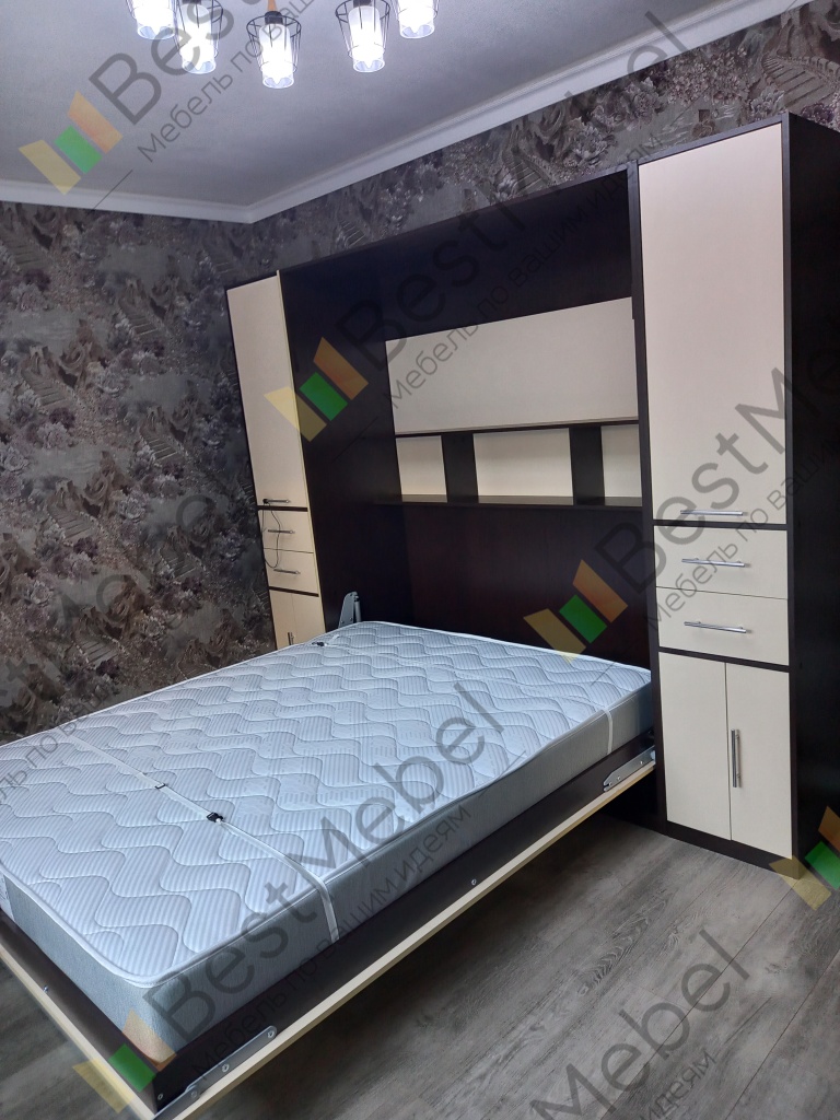 Мы не рекомендуем покупать пружинные матрасы к шкафу-кровати. Стоит отдавать предпочтение беспружинным изделиям. Это связано с тем, что поведение пружин в вертикальном положении матраса невозможно предсказать. Матрас быстро подвергается деформации и смещению слоев. Идеальным вариантом для откидной модели будет лёгкий беспружинный матрас, основу которого составляют современные материалы, не имеющие в составе пружины.