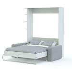 Шкаф-кровать с диваном Изабель-8 BMS позволит организовать комфортное спальное место в любом из помещений дома. В сложенном виде модель представляет собой небольшой шкаф с торцевым стеллажом и двухместным диванчиком с подлокотниками. При необходимости центральная откидная часть, замаскированная под дверцы, легко трансформируется в полноценную кровать. Выполненный в контрастных древесных тонах, шкаф гармонично вписывается в современные интерьеры. Купить шкаф-кровать с диваном Изабель-8 BMS приглашаем в наш интернет-магазин.