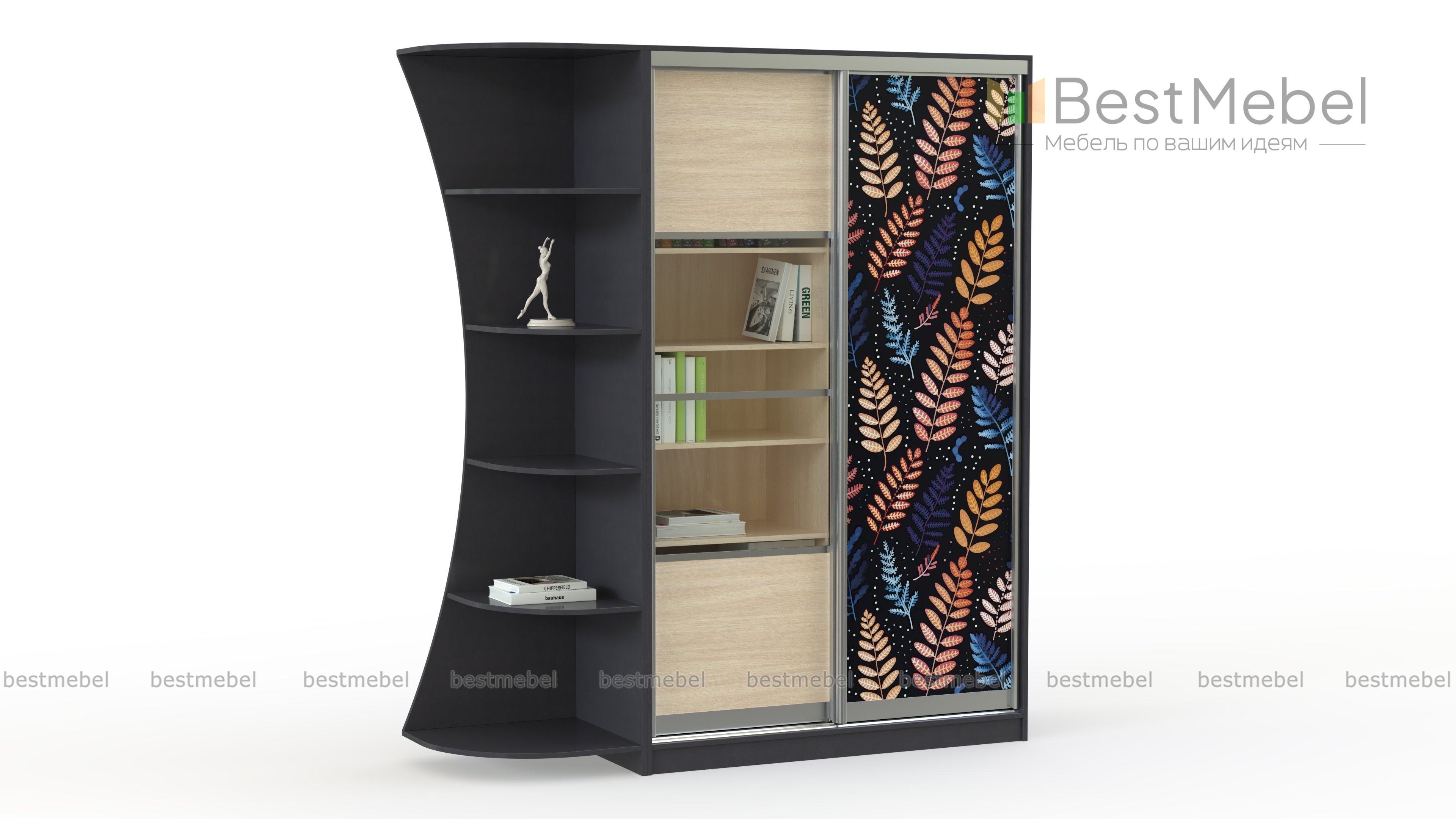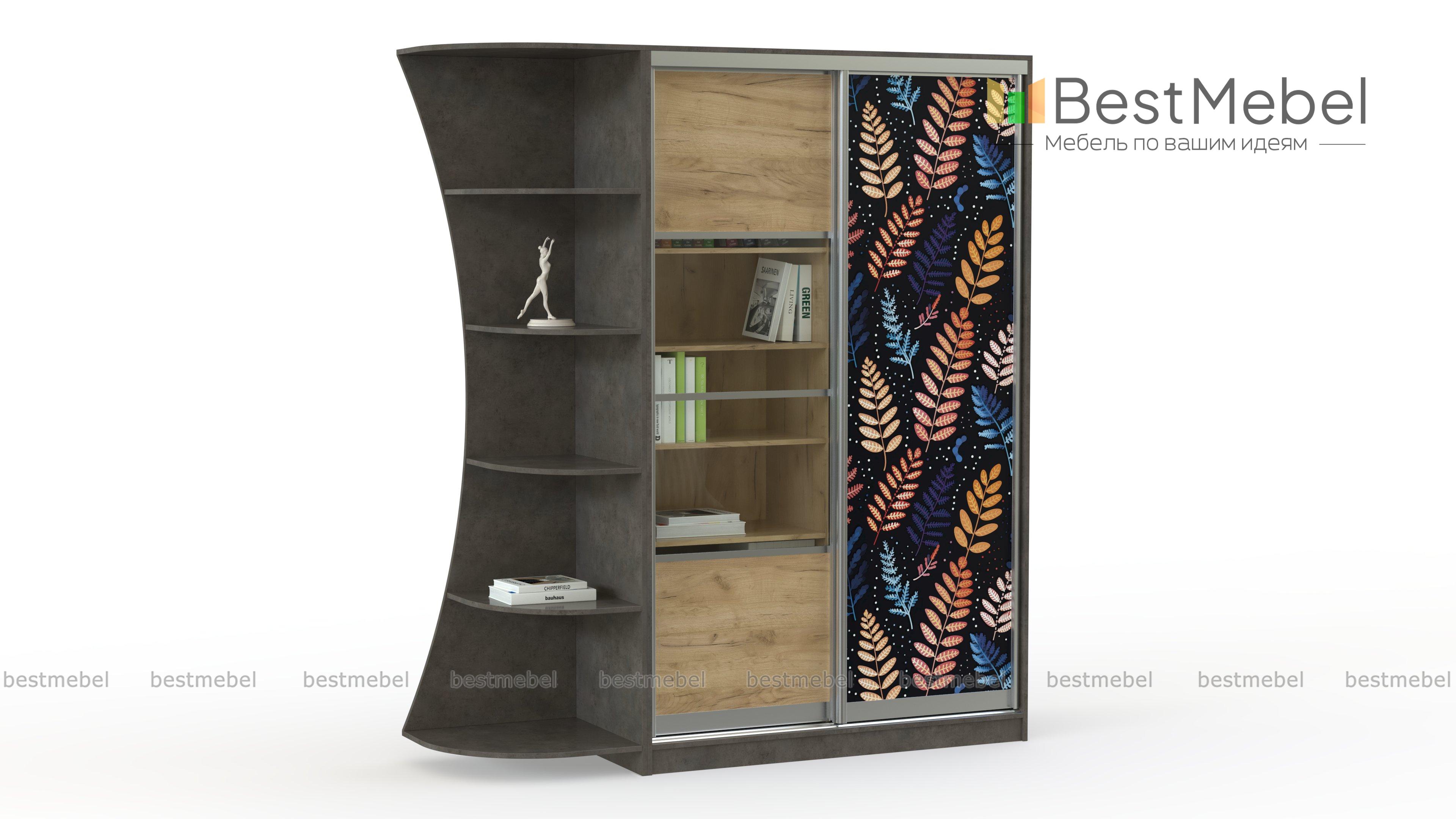 Шкаф-купе Горы 8 BMS станет практичным решением для подростковых комнат и небольших гостиных. Разные варианты хранения предусматривает комбинированная конструкция шкафа: закрытое платяное отделение, выделенная древесными оттенками застекленная секция с полками и эффектно вырезанный стеллаж. Яркий растительный принт на фасаде играет роль интерьерного акцента. Купить шкаф-купе Горы 8 BMS вы сможете в нашем интернет-магазине с выбором нужных размеров и цветовой гаммы.