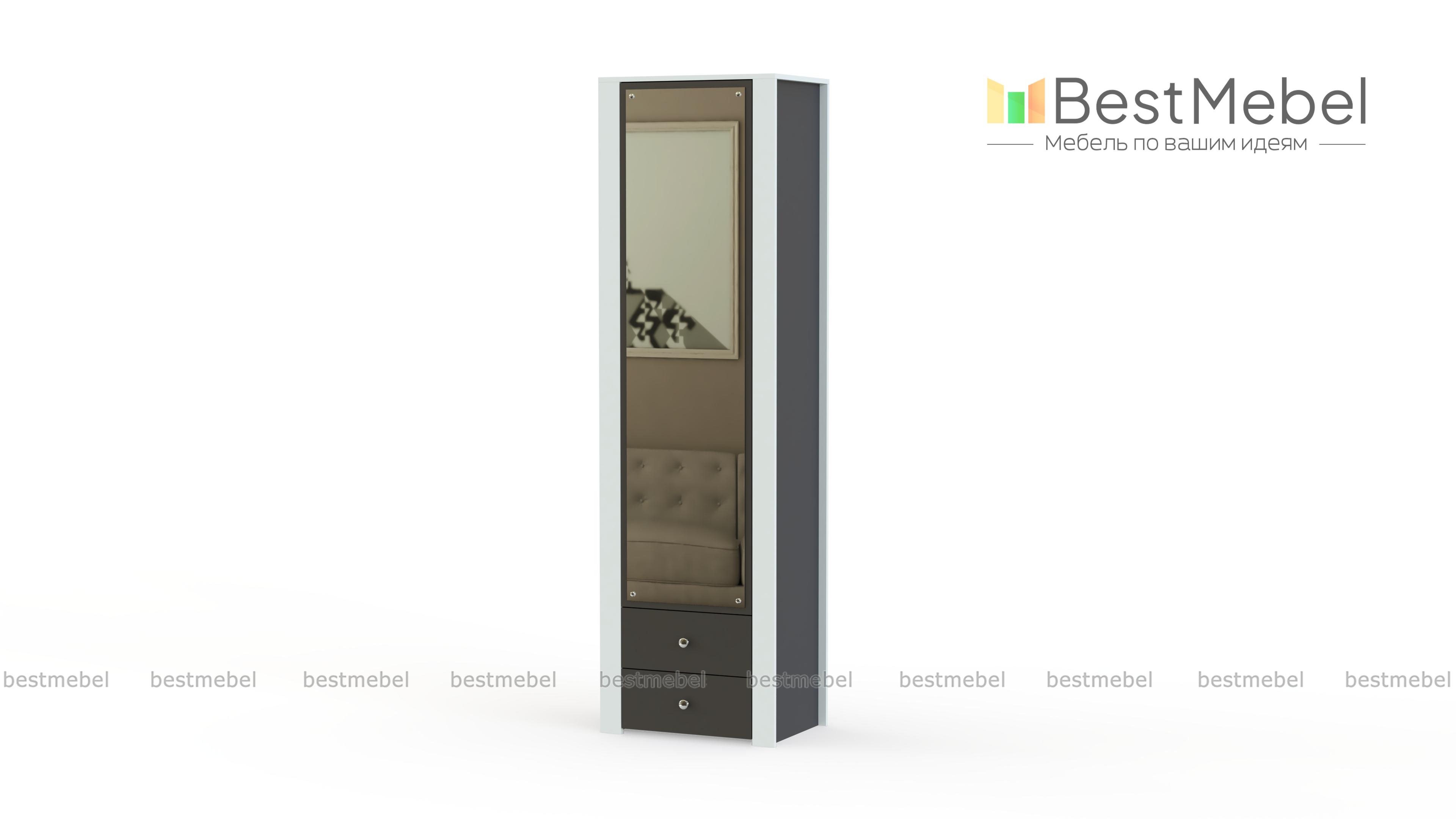 Пенал Беллатриса 4 BMS хорошо вписывается в пространство лофта или интерьера в экостиле. Выполненный в натуральных серых оттенках, пенал выглядит массивным благодаря накладкам на фасаде. Особенную вместительность модели обеспечивает комбинированная конструкция: распашное отделение с зеркальным фасадом и два выдвижных ящика для хранения мелочей. Купить пенал Беллатриса 4 BMS для меблировки спальни, гостиной или прихожей вы сможете в нашем интернет-магазине.
