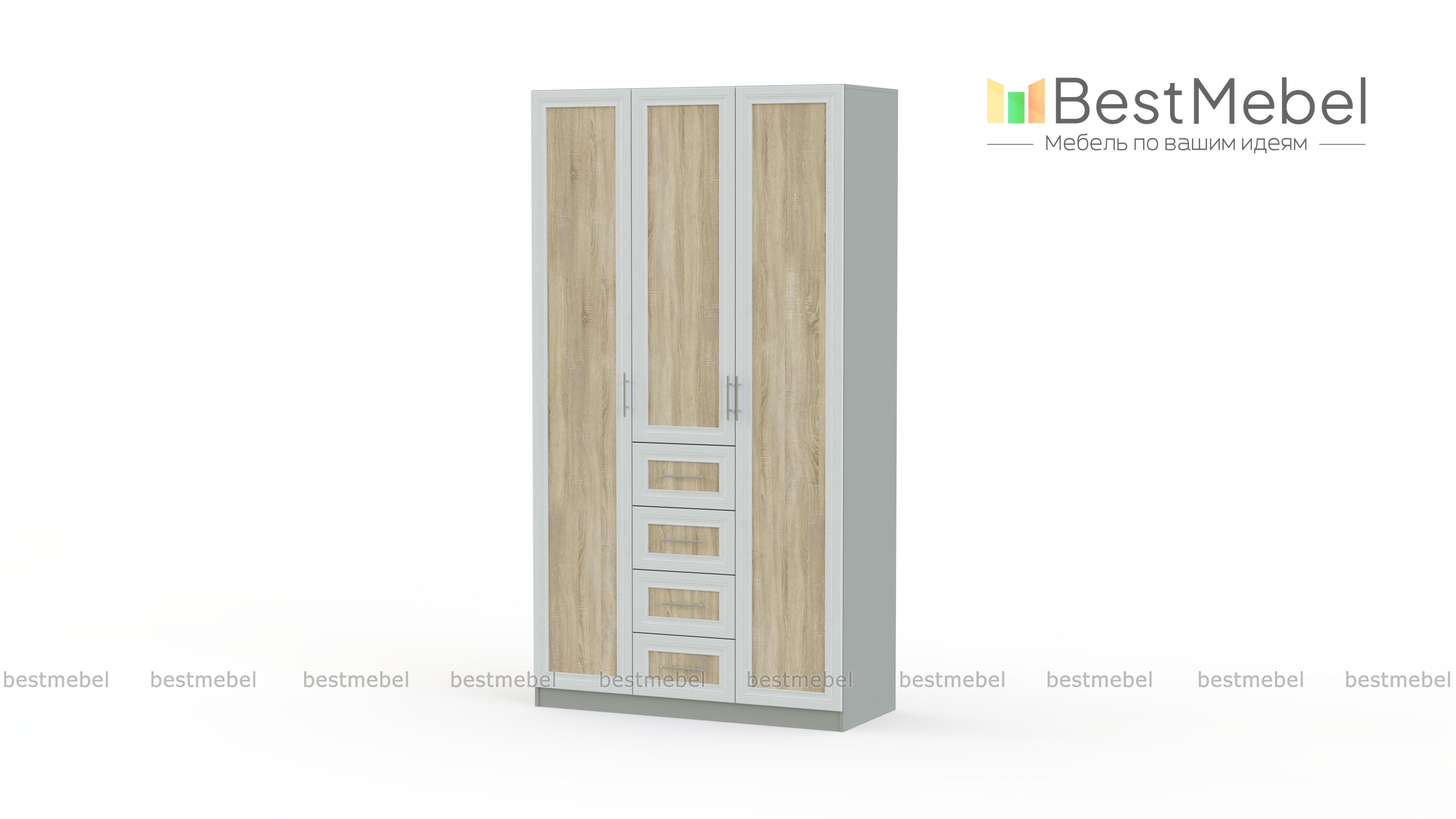 Распашной шкаф Крона 14 BMS – это гармоничные пропорции, надежность и элегантный дизайн, объединивший классические и современные черты. Вместительная модель порадует владельцев наличием отделений разного типа, что позволит максимально аккуратно разместить предметы гардероба. Незаменимый в интерьере спальни, шкаф оборудован платяным отделением со штангой, бельевыми полками и четырьмя выдвижными ящиками для мелочей. Купить распашной шкаф Крона 14 BMS вы сможете в нашем интернет-магазине, подобрав оптимальные параметры.