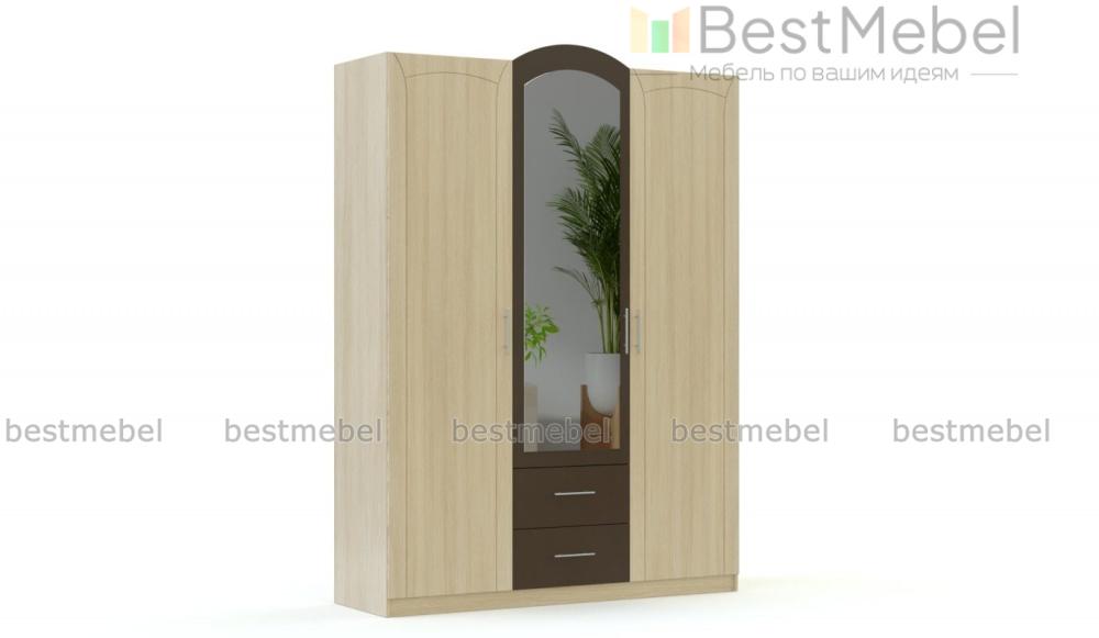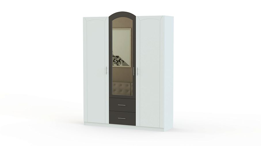 Распашной шкаф Марта 01 BMS с оригинальным декором фасада и арочной центральной створкой сразу привлекает к себе внимание. В оформлении модели скомбинированы светлые тона и графитовый, большое зеркало со скругленным верхом визуально облегчает конструкцию. Трехдверный шкаф имеет удобные средние габариты и отличается хорошей вместительностью благодаря наличию распашных отделений с полками и штангой и двух выдвижных ящиков. Купить распашной шкаф Марта 01 BMS с учетом нужных размеров приглашаем в наш интернет-магазин.