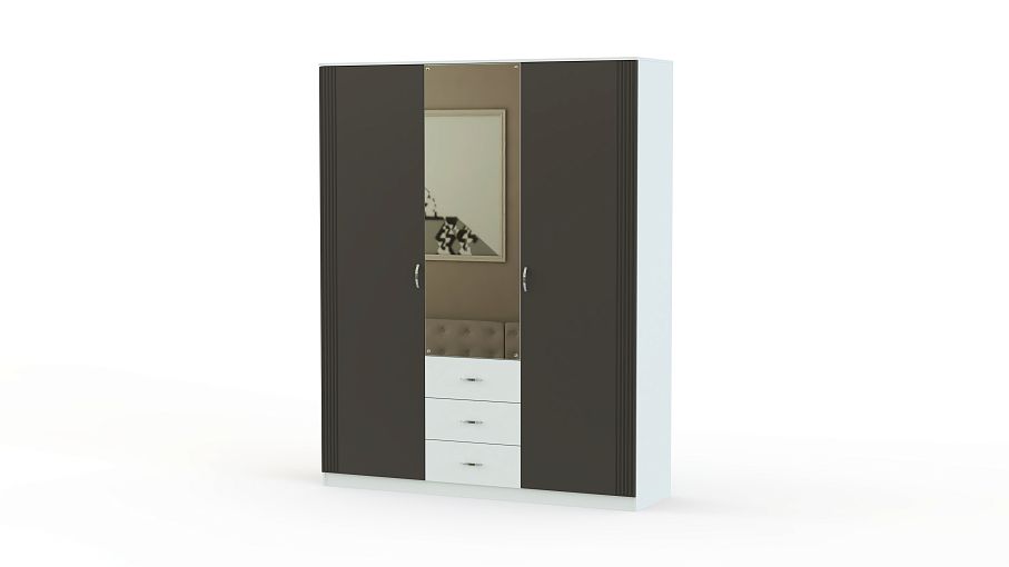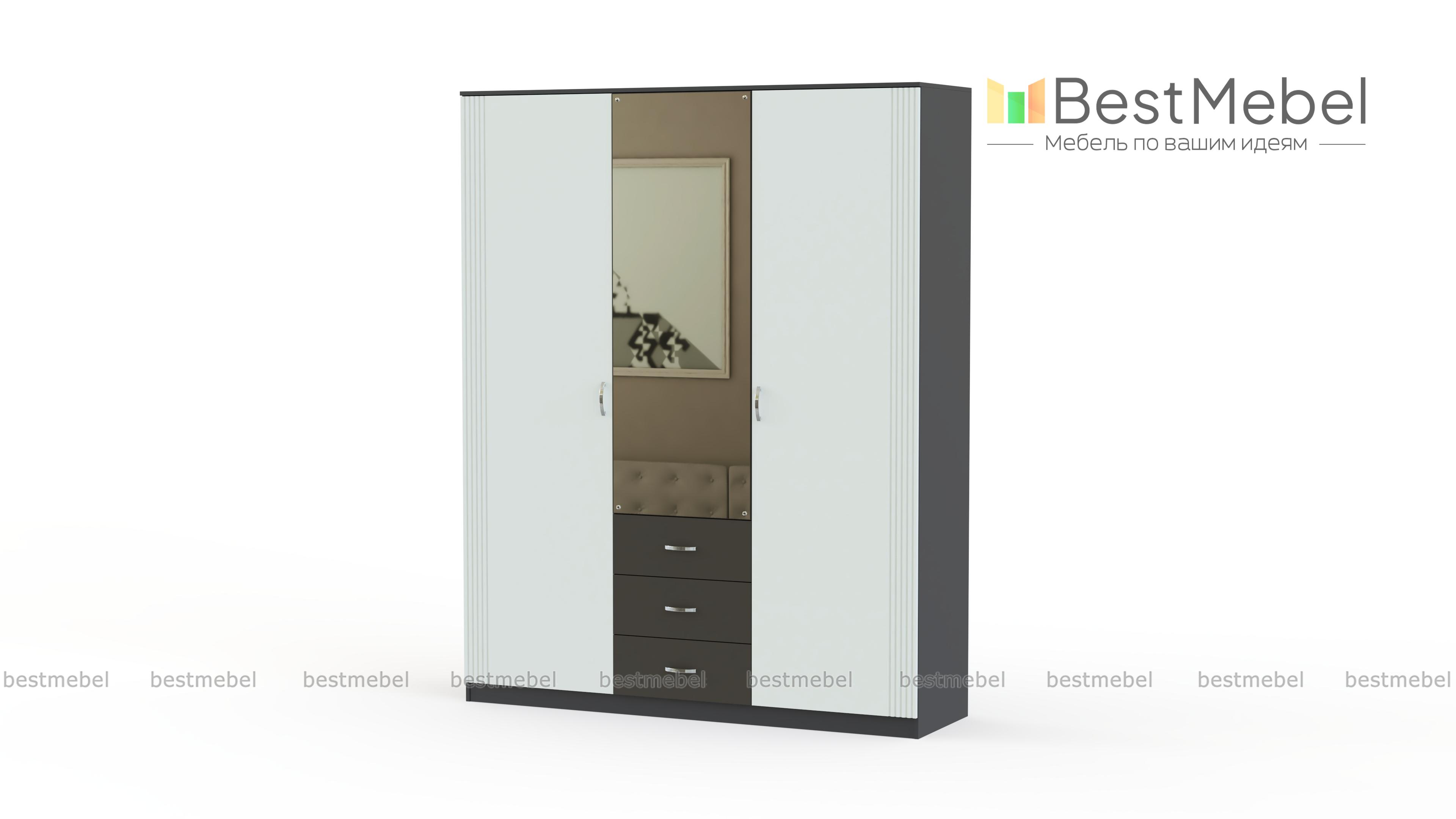 Шкаф распашной Диана К2 BMS станет практичным решением для размещения внушительного количества предметов гардероба. Трехдверная модель оборудована выдвижными ящиками и распашными отделениями с платяным отсеком, укомплектованным овальной штангой, и с бельевыми полками. Контрастный темный фасад графитового оттенка дополнен фрезеровкой, а зеркало геометрично простой формы придаст визуальной легкости конструкции. Купить шкаф распашной Диана К2 BMS по доступной цене вы можете на сайте нашего интернет-магазина.