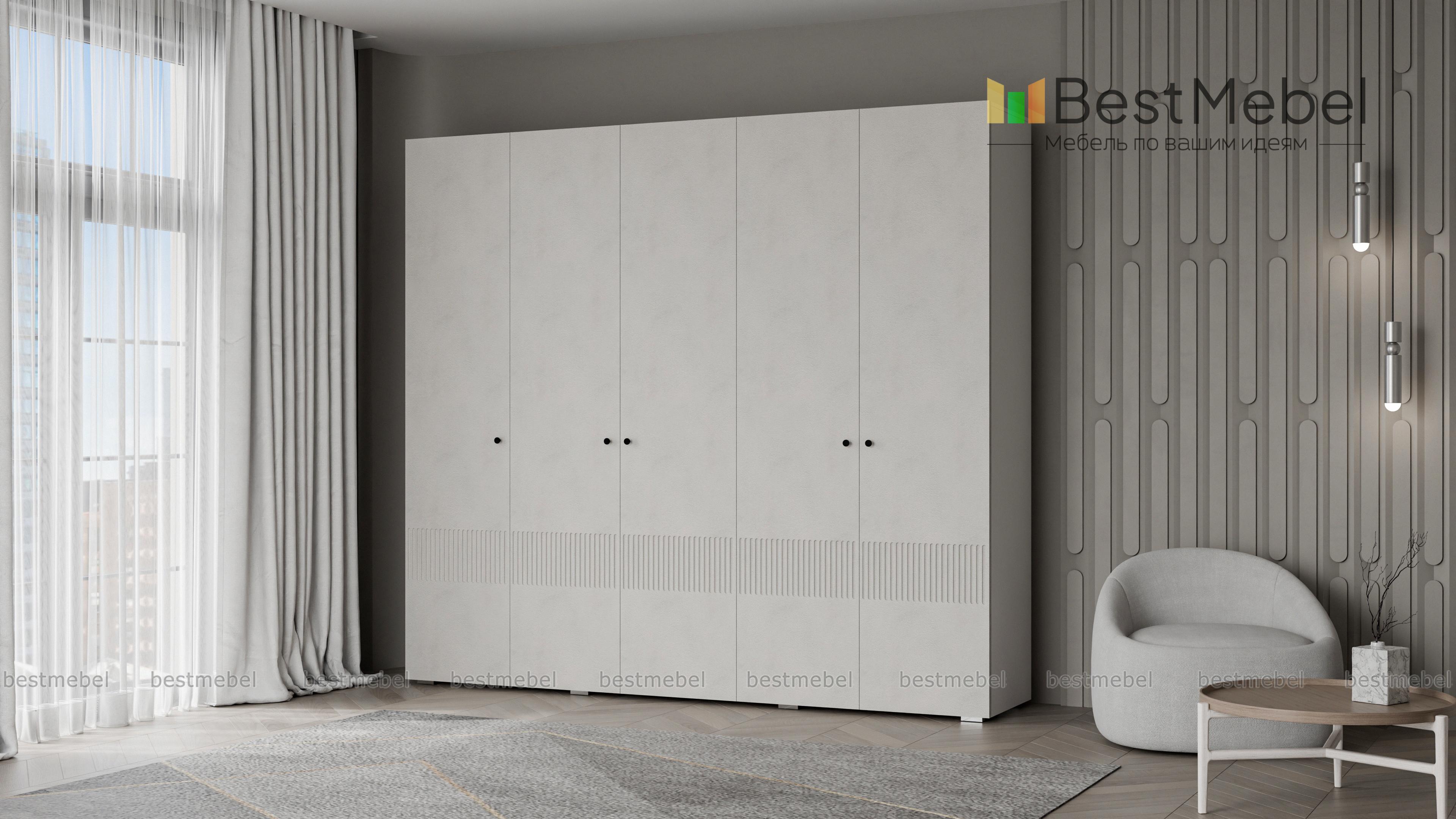 Шкаф распашной Джосс 5 BMS — это яркая современная модель с цветным фасадом и фрезеровкой. Комплектация с двумя штангами и полками подходит как для сложенной, так и развешанной на вешалках одежды, а также обуви и коробок с аксессуарами. С помощью этого пятидверного шкафа вы сможете удобно и эстетично организовать хранение гардероба для двух человек. Купить шкаф распашной Джосс 5 BMS с выбором размеров, цвета и фурнитуры приглашаем к нам в интернет-магазин.