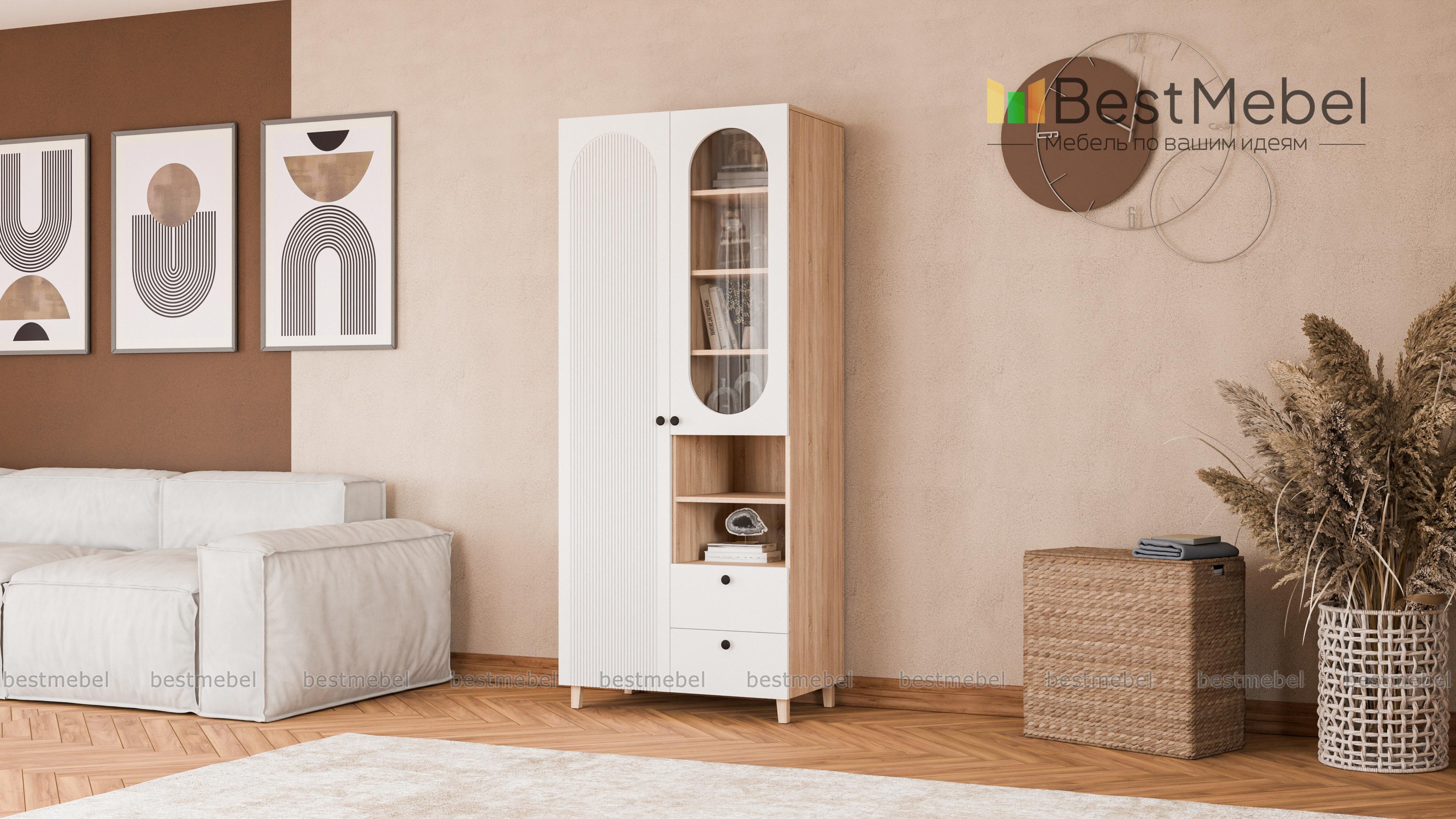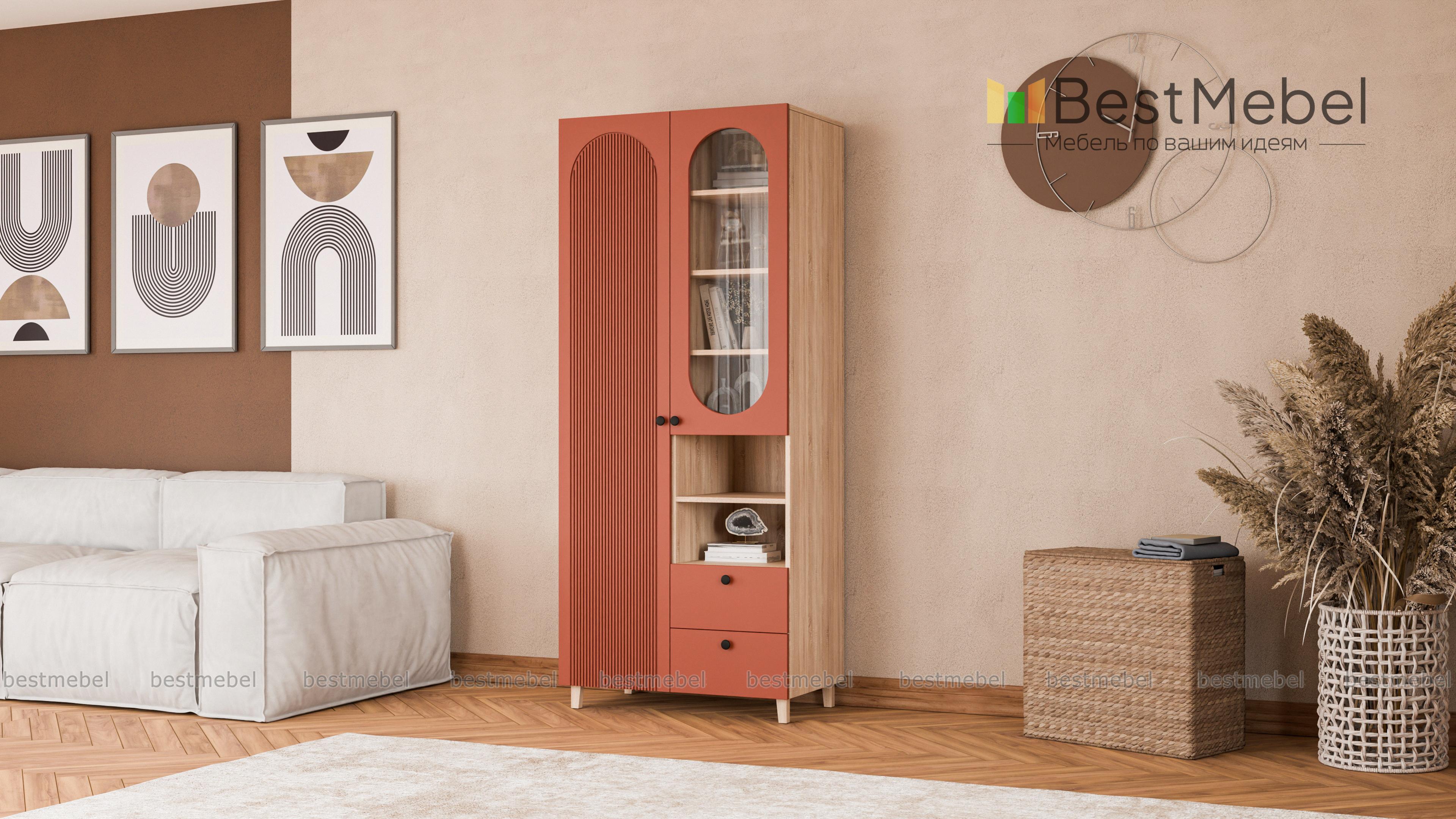 Шкаф распашной Рене 5 BMS станет не только местом хранения вещей, но и элементом дизайна современного дома. Конструкция шкафа хорошо продумана: закрытое отделение для одежды слева дополнено расположенными справа полками, ящиками и витриной. Внешне легкий благодаря высоким ножкам, шкаф со стильным темным оформлением фасада украшен овальным вырезом и фрезеровкой. Купить шкаф распашной Рене 5 BMS вы сможете в нашем интернет-магазине с индивидуальным подбором цвета и габаритов.