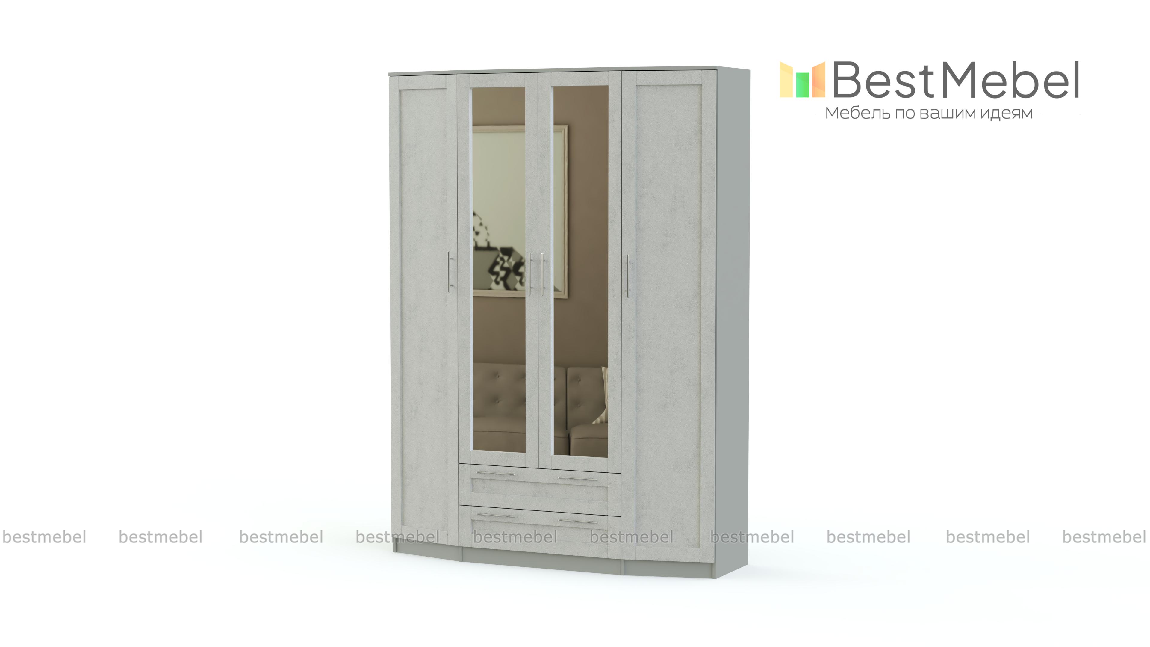 Шкаф распашной Скандинавия BMS выполнен в классическом стиле, а особенностью дизайна станет чуть выступающий трапециевидный фасад. Помимо распашных отделений с бельевыми полками и штангой четырехдверный шкаф оборудован двумя вместительными выдвижными ящиками. Фрезерованные створки в универсальных белых тонах скомбинированы с полностью зеркальными, удобными для примерки и визуально облегчающими интерьер. Купить шкаф распашной Скандинавия BMS для меблировки спальни или прихожей вы сможете в нашем интернет-магазине.