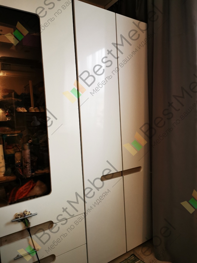 Подбирали шкаф к стенке Соренто 2. Подошел, смотрится хорошо. Большой минус- ручек нет, также нет никакой выемки для открывания дверей. Шкаф открыть очень проблематично, рука соскальзывает. Промучилась пару дней, открывая снизу двери. Потом съездила, купила ручки.