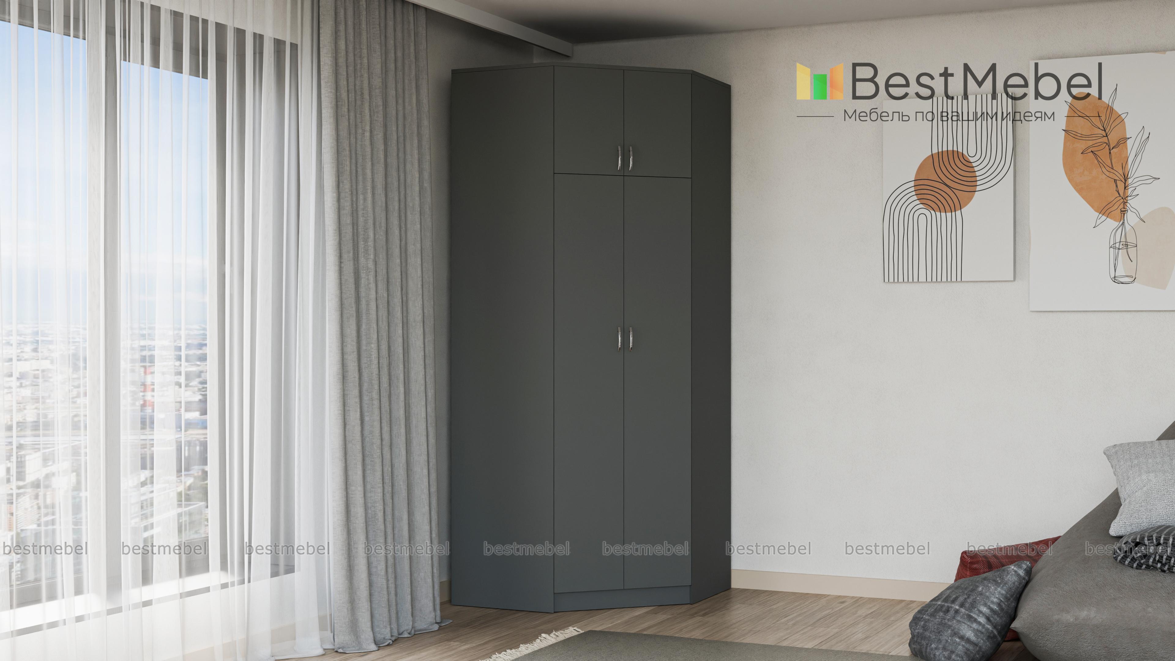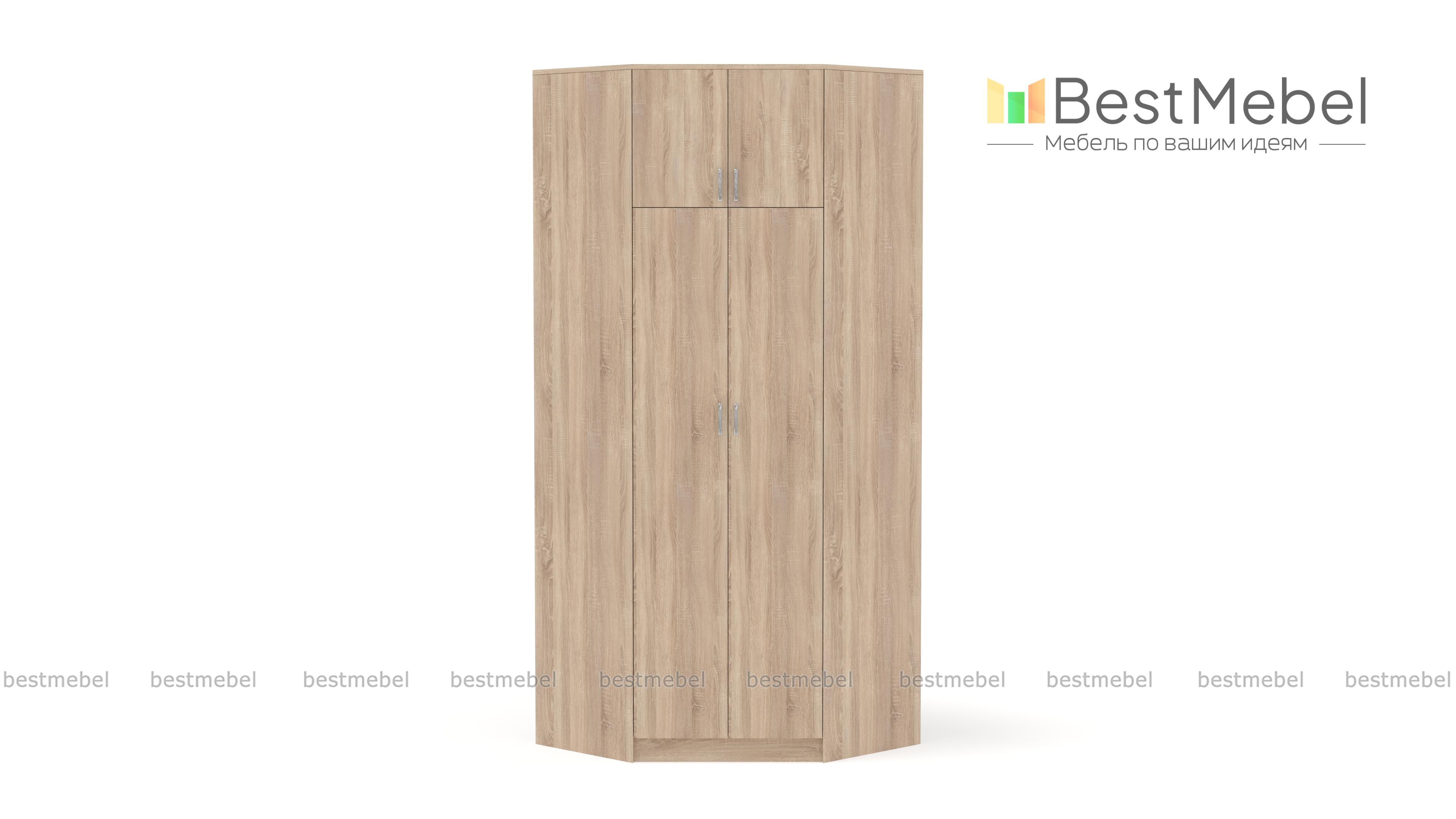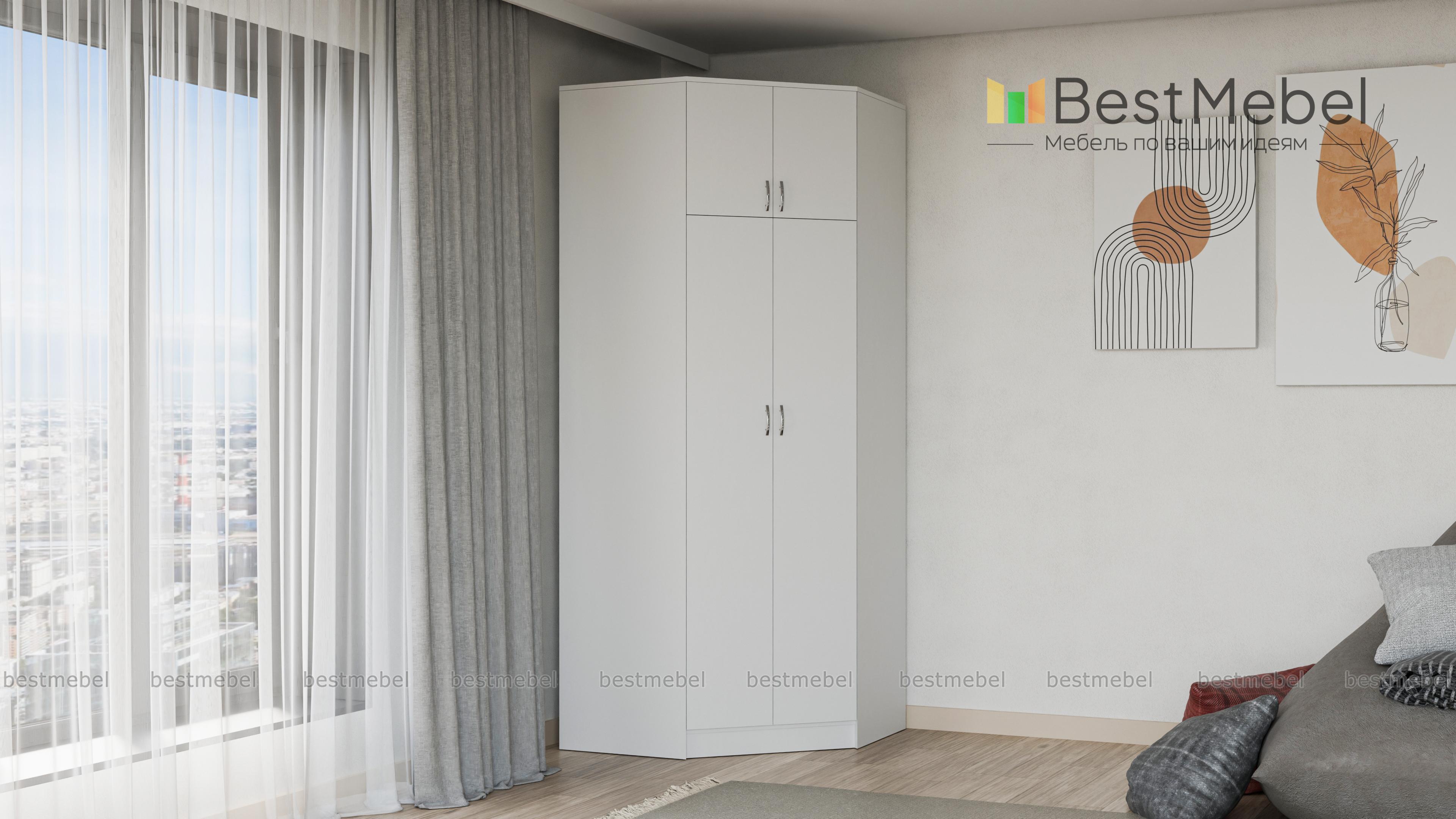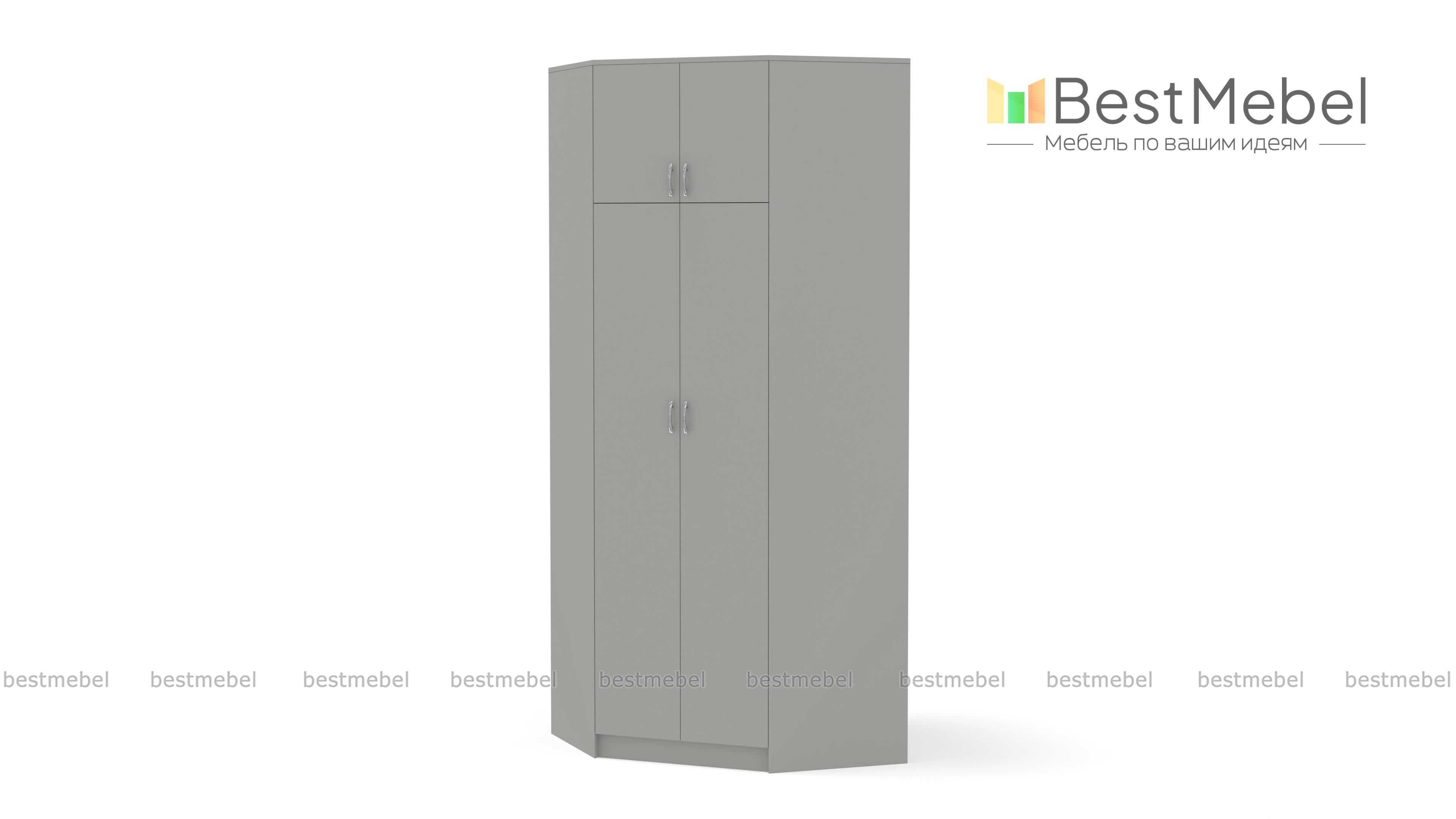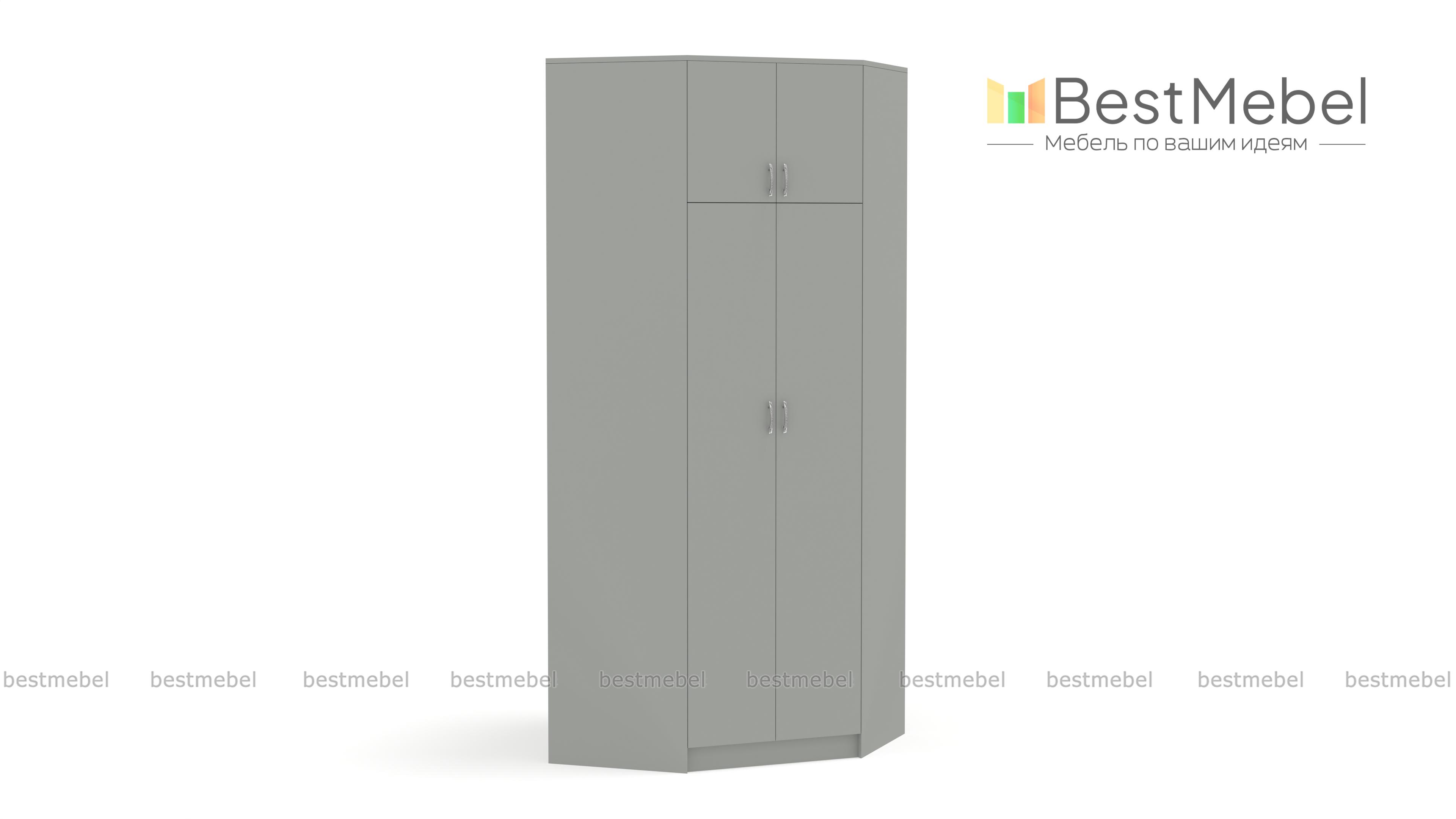 Шкаф угловой Бостон BMS значительно экономит пространство за счет практичной конструкции. Вы сможете не только задействовать угловую часть комнаты, но и по максимуму использовать ее в высоту. Трапециевидная модель лаконичного классического дизайна оборудована основным двухдверным отделением с полками и штангой и вместительной распашной антресолью. Купить шкаф угловой Бостон BMS приглашаем на сайт нашего интернет-магазина с выбором размеров, цвета и фурнитуры.