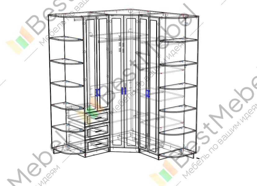 Угловой шкаф Мира BMS – это продуманная до мелочей система хранения и практичная конструкция, позволяющая сэкономить пространство. Композиция объединила три двухдверных шкафа – угловой с зеркальным фасадом, закрытый и комбинированный с выдвижными ящиками, а также торцевые стеллажи с радиусными полками. Шкаф с рамочными фасадами выполнен в классическом стиле и смотрится актуально в крафтовых древесных тонах. Купить угловой шкаф Мира BMS и компактно разместить большое количество вещей вам поможет наш интернет-магазин.