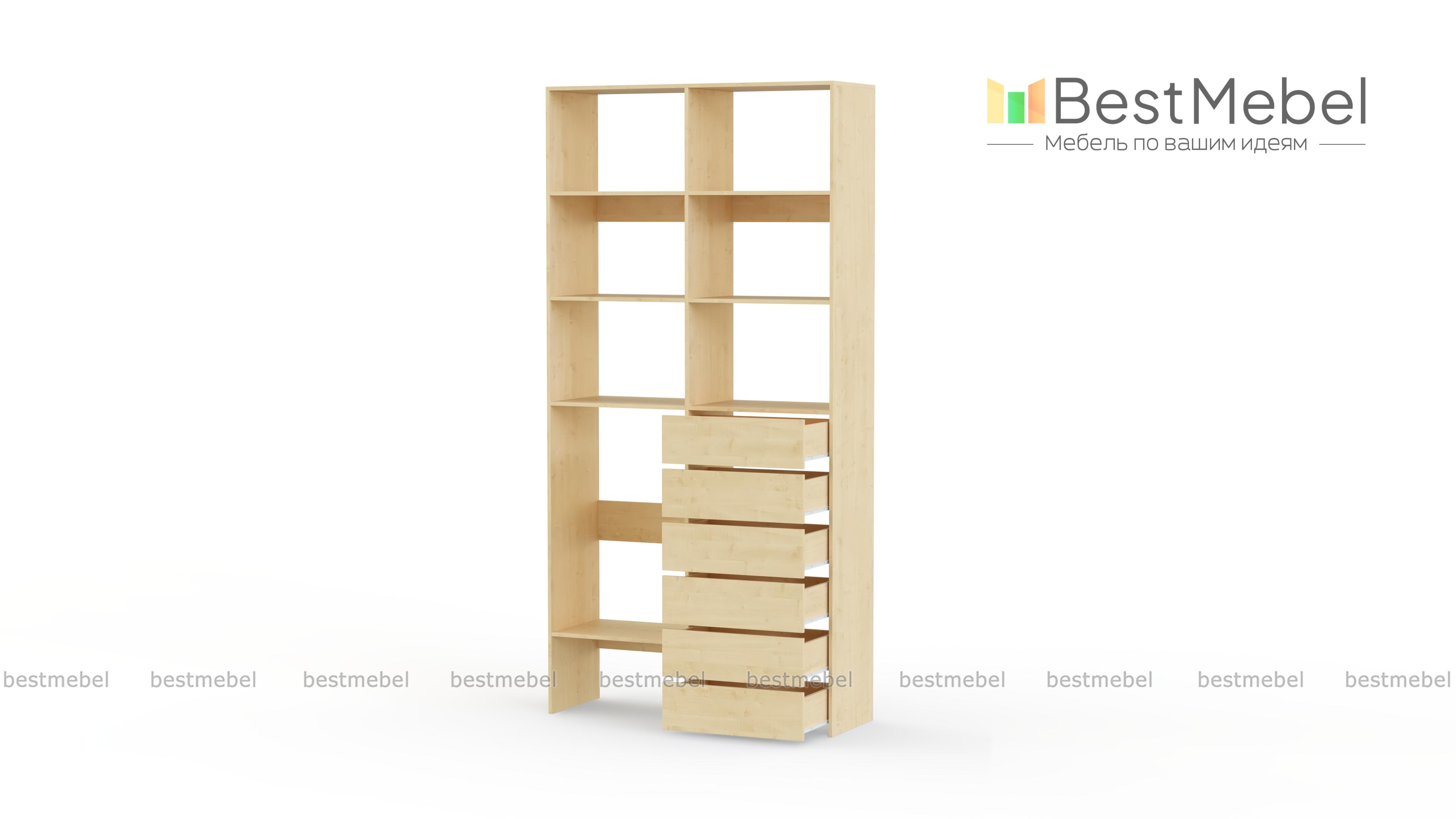 Стеллаж для одежды Мирта 39 BMS представляет собой готовое решение для вашей прихожей или гардеробной комнаты. Расположенные на разной высоте полки и целых шесть выдвижных ящиков позволят вам разместить как мелкие, так и габаритные вещи: одежду, обувные коробки и всевозможные аксессуары. Для изготовления стеллажа использован современный экологичный материал — ламинированная ДСП. Купить стеллаж для одежды Мирта 39 BMS в оттенках нашего каталога на выбор вы сможете на сайте интернет-магазина.