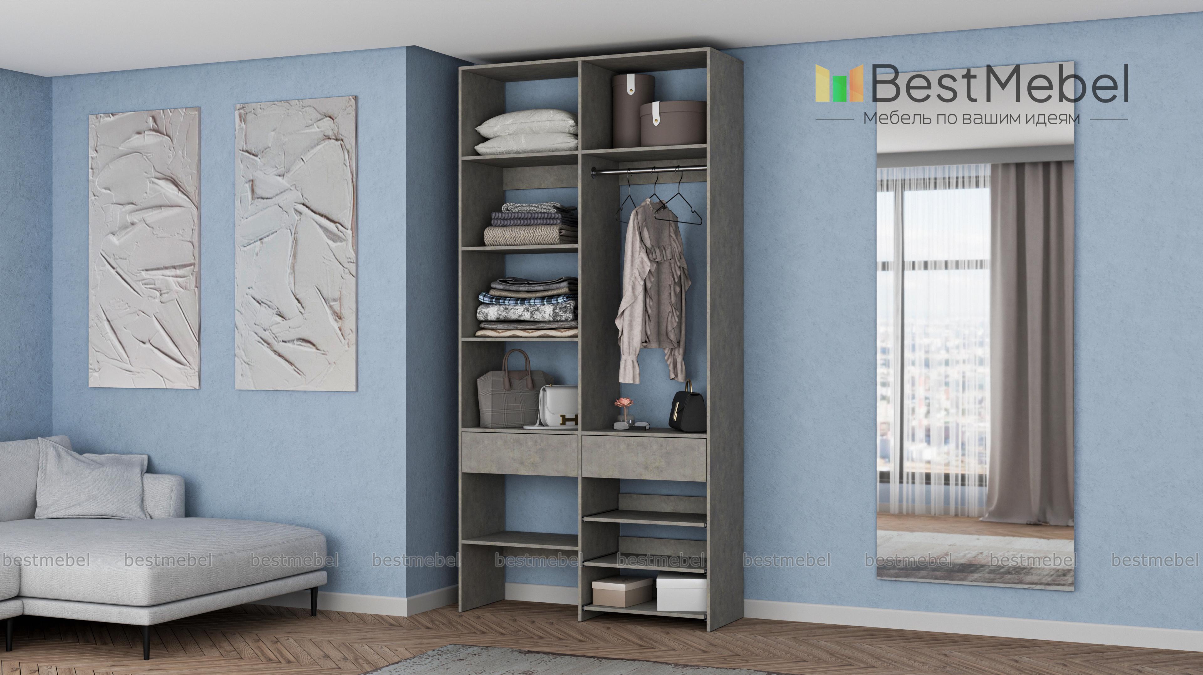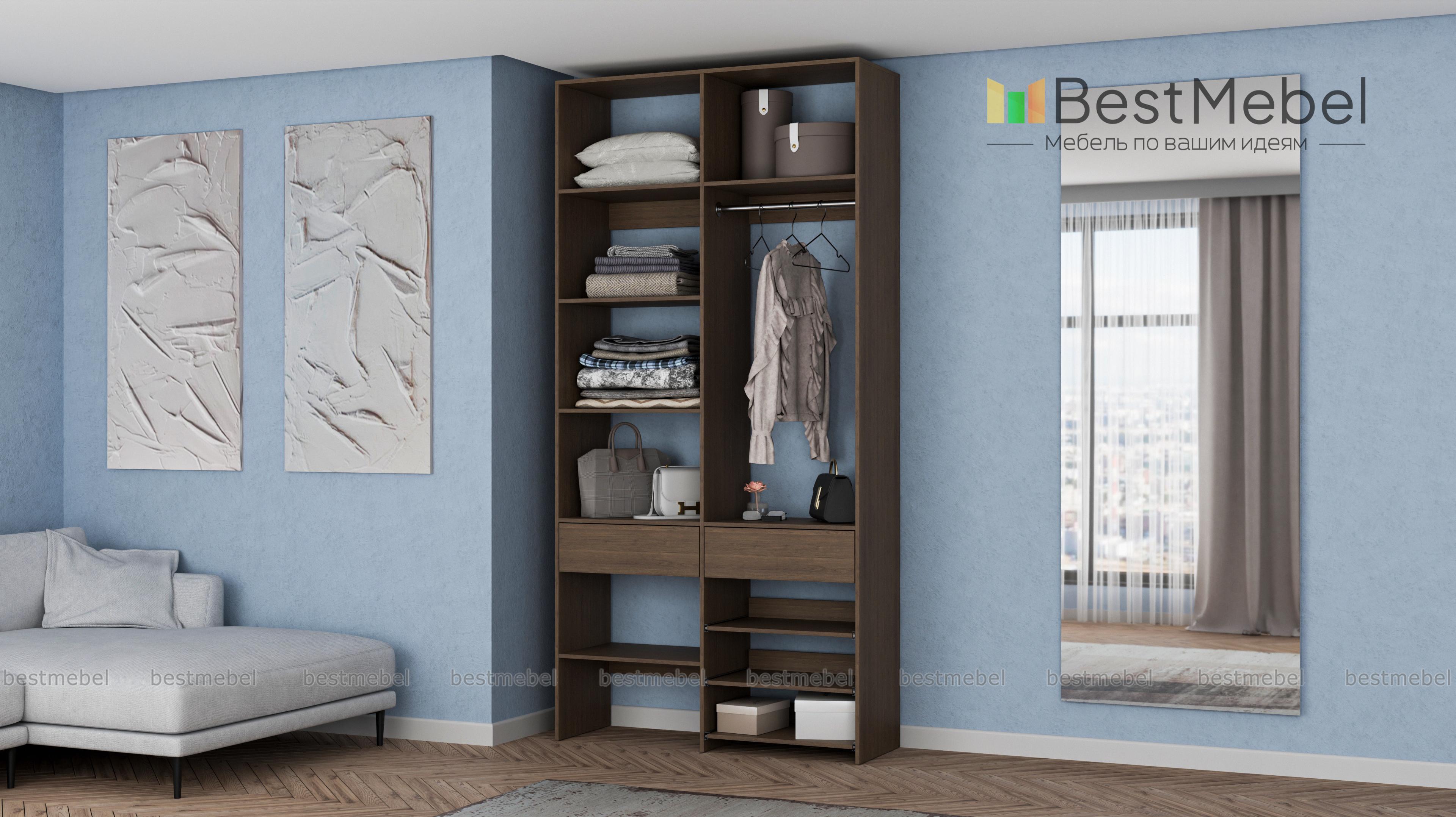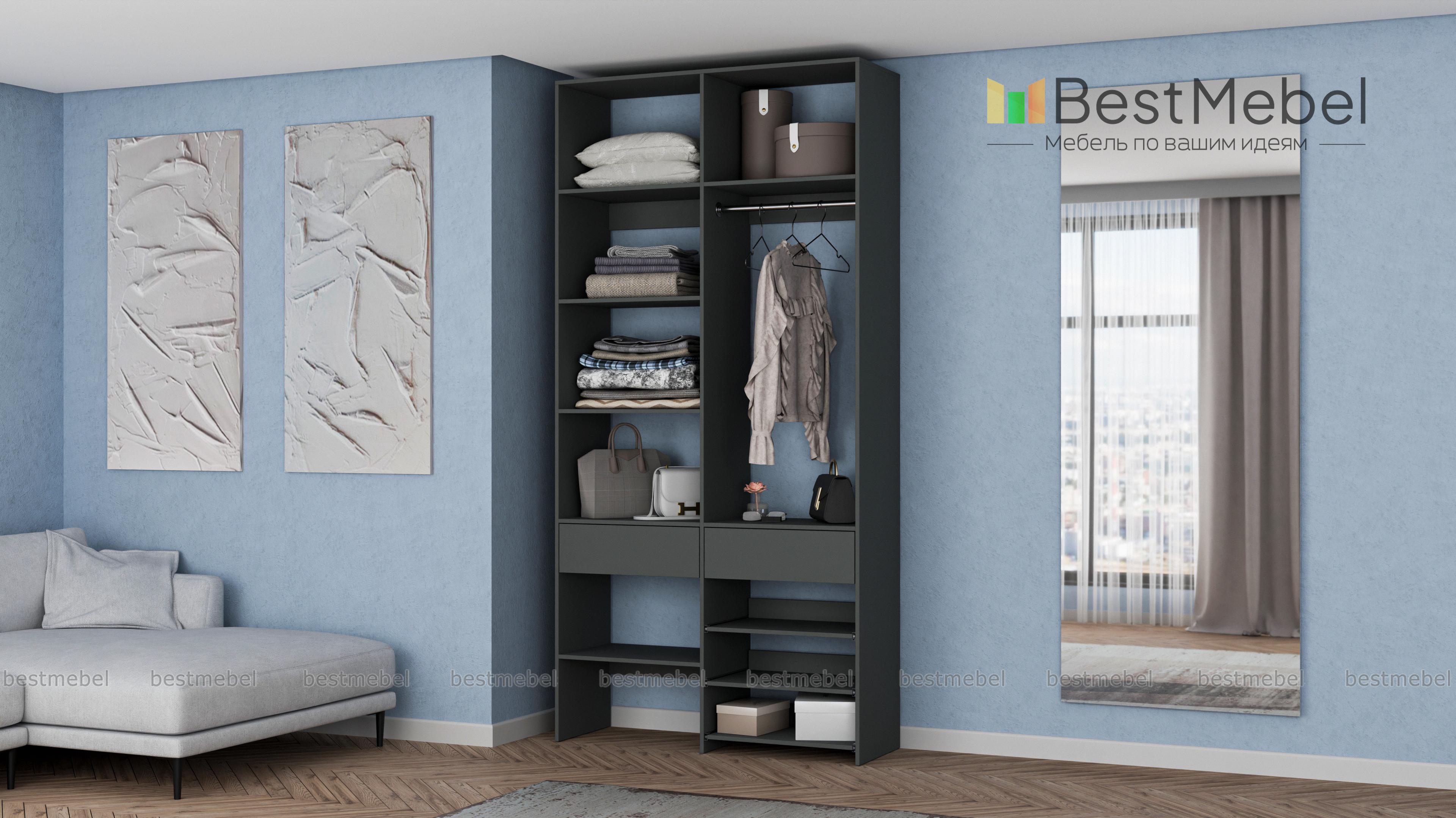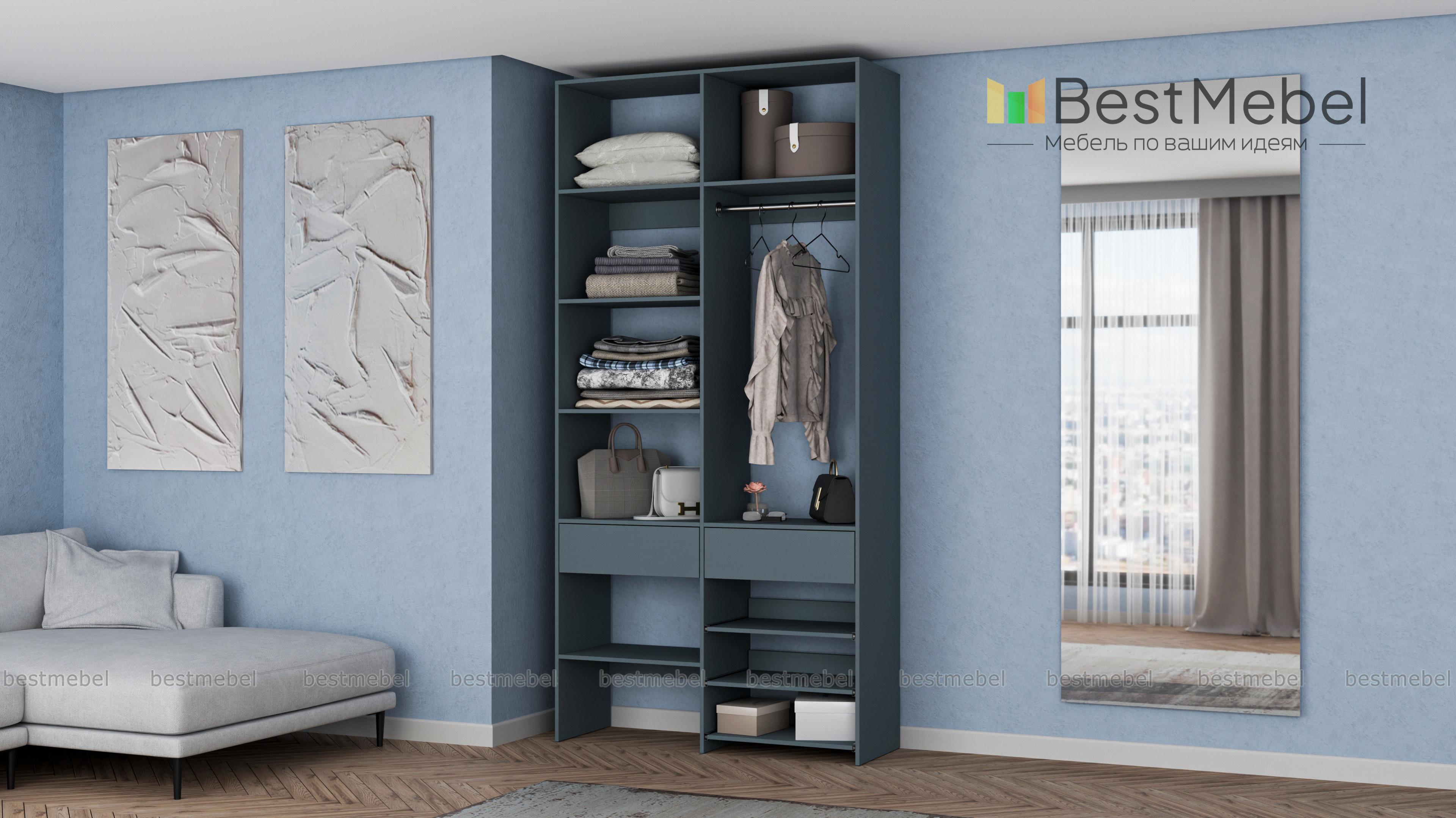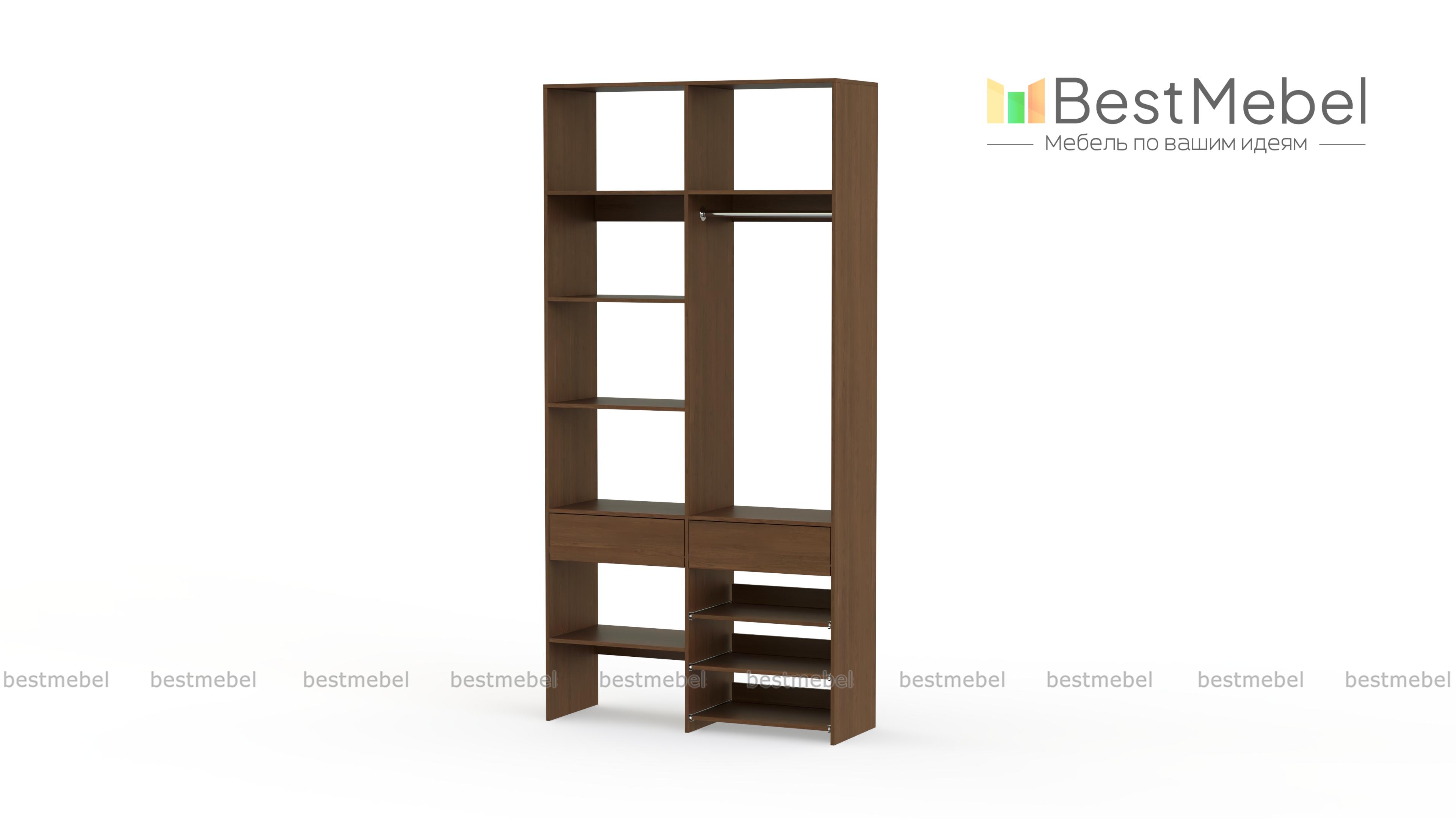 Стеллаж для одежды Мирта 81 BMS — компактная и вместительная система хранения в прихожую, спальню, гардеробную. Одежная штанга, два ящика под аксессуары и мелкий трикотаж, ряд бельевых полок и выдвижных панелей имеют эргономичное размещение. Благодаря простой форме и современному функциональному дизайну стеллаж легко комбинируется с другими предметами обстановки. Купить стеллаж для одежды Мирта 81 BMS приглашаем в наш интернет-магазин, подобрав цвет и размеры.
