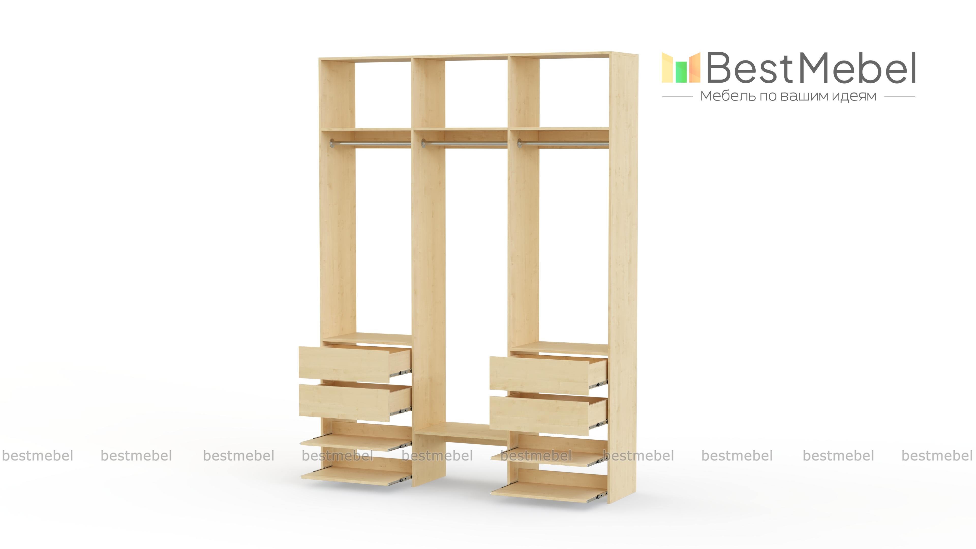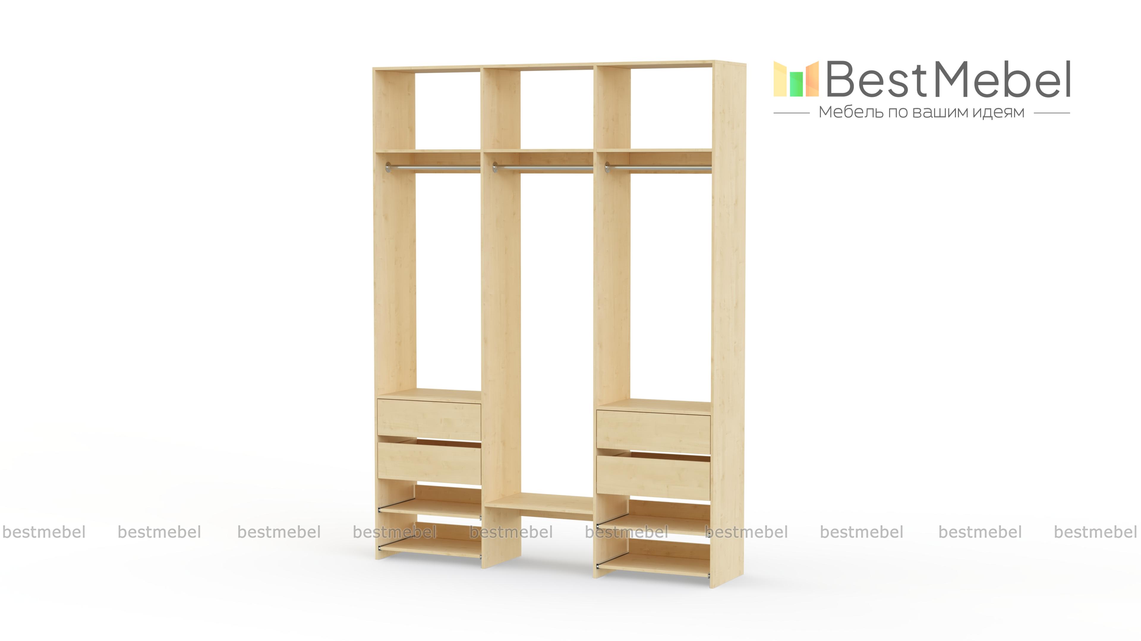Стеллаж для одежды Мирта 92 BMS обеспечит вашему гардеробу удобное открытое хранение. Три штанги предназначены для короткой и длинной одежды, верхние секции разместят те вещи, что редко используются, а выдвижные ящики и полки — по два справа и слева, облегчат доступ к обуви и мелочам. Ламинированные поверхности стеллажа износостойкие и легко моются. Купить стеллаж для одежды Мирта 92 BMS в необходимом размере и оттенке из каталога вы сможете на сайте нашего интернет-магазина.