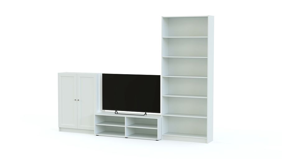 Стенка Билли Бесто Billy Besta 3 включает в себя тумбу под аппаратуру, высокую распашную тумбу и книжный стеллаж. На открытых и расположенных за глухими дверцами полках вы можете разместить все, что угодно: одежду, посуду, книги из домашней библиотеки и любимый декор. Простые функциональные модули нейтрального цвета дают широкий простор для воплощения ваших идей. Купить стенку Билли Бесто Billy Besta 3 и грамотно спланировать пространство вам поможет наш интернет-магазин. Выбирайте мебель в стиле IKEA (ИКЕА) от производителя BestMebelShop!