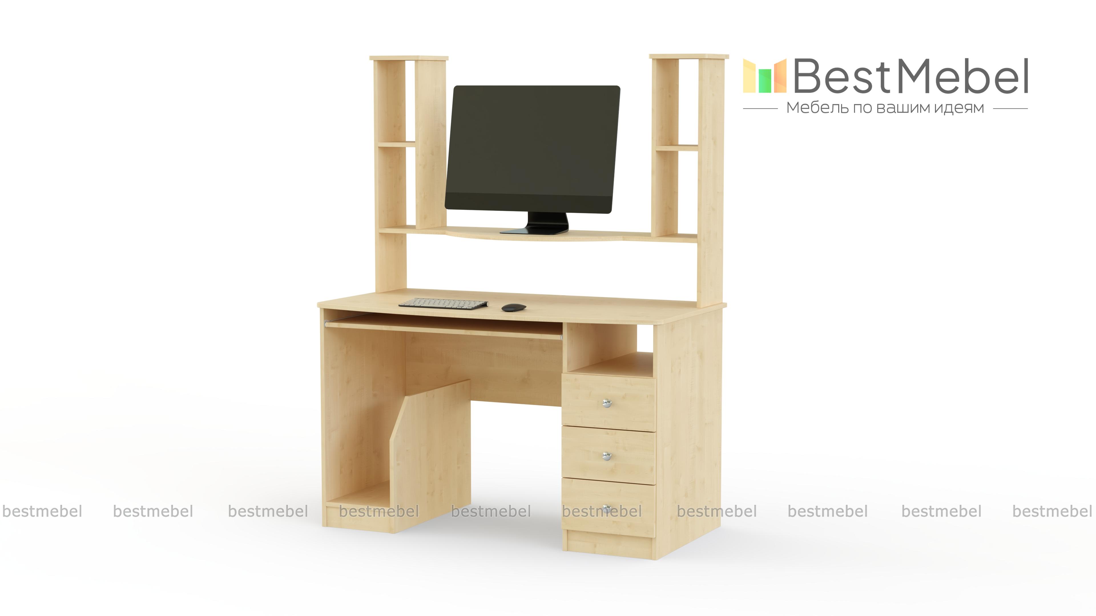 СК-001 – идеальный вариант для учащихся и работающих людей. Стол оснащен открытой нишей для системного блока, выдвигающейся панелью для клавиатуры, тремя ящиками для разнообразных документов. Также на столешнице прикреплен стеллаж с множеством полок, где можно разместить предметы декора, сувениры, документы или книги. На сайте Вы можете найти палитру цветов, а также можно подобрать параметры модели. Купить изделие можно в нашем интернет-магазине по доступной цене.
