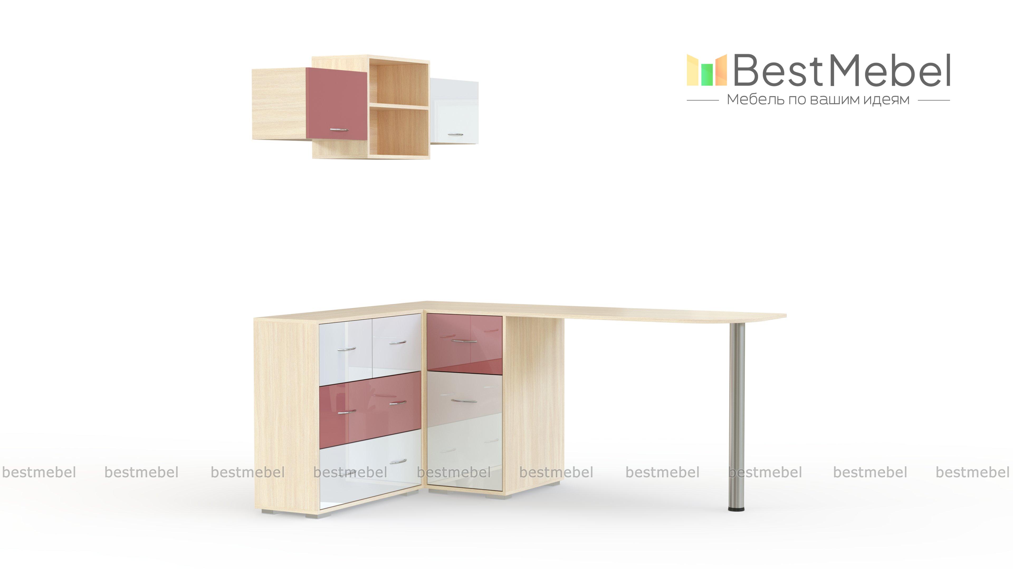 Письменный стол Глэм 3 BMS – это практичная угловая модель, совмещенная с комодом. Прямоугольная, безопасно скругленная столешница на хромированной опоре дополнена тумбой с распашным отделением и выдвижным ящиком для канцелярских мелочей и комодом с ящиками разных размеров. Разместить в зоне быстрого доступа книги поможет навесная полка с глухими и открытыми секциями. Купить письменный стол Глэм 3 BMS с глянцевыми фасадами вы сможете в нашем интернет-магазине.