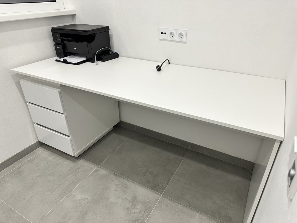 Заказ 00000246775, изделие Стол с ящиками Квинта 7 BMS (1800х770х700)Отличный стол прекрасного качества. размер, цвет, расположение ящиков подбирали на сайте под заказ. Все получилось в точности как и хотели! Спасибо!