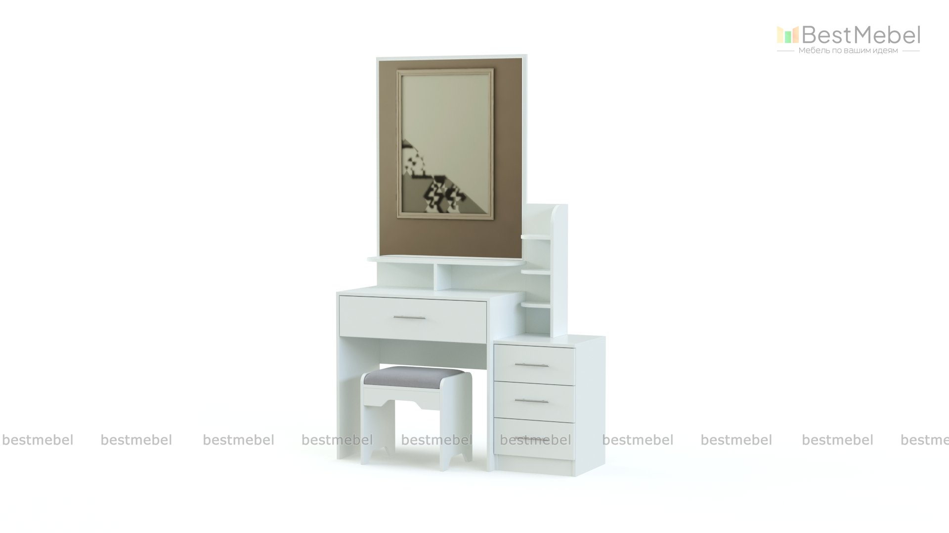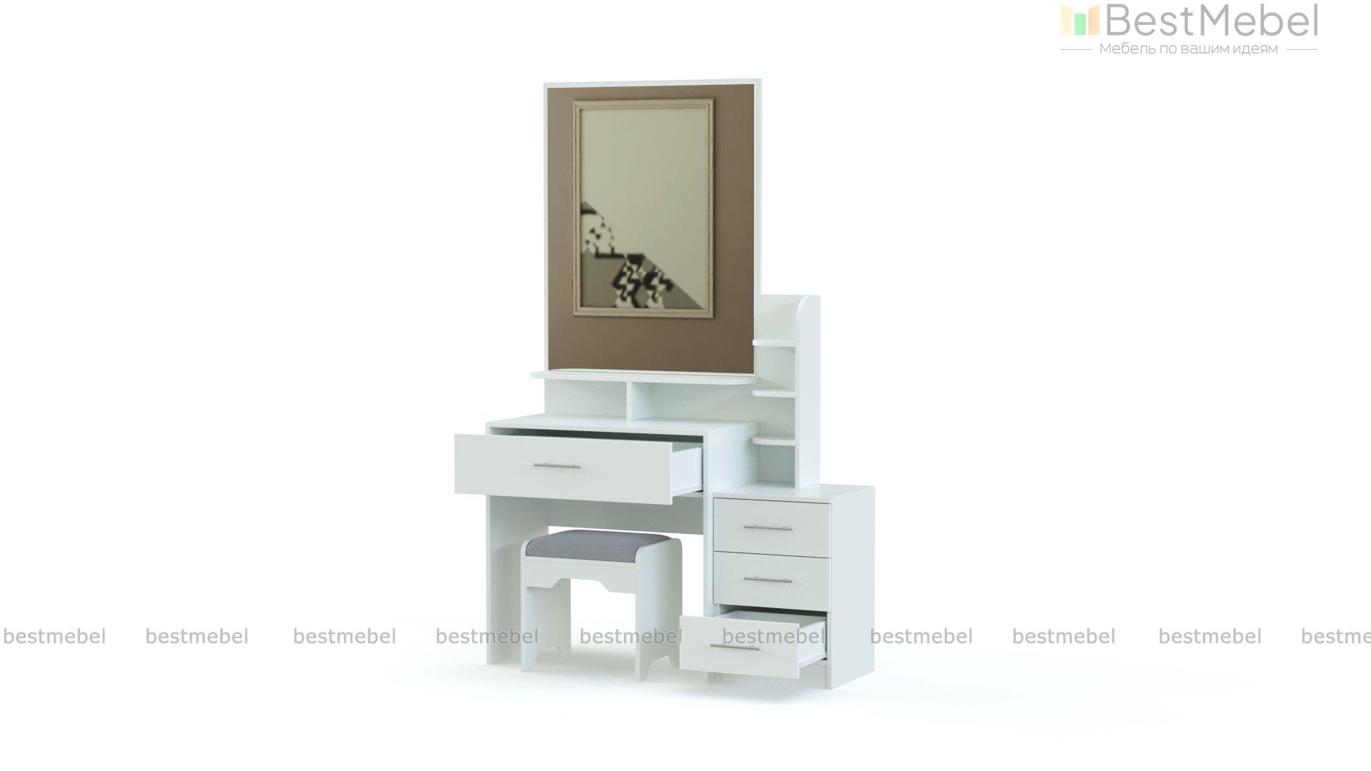 Стол туалетный Мару 12 BMS выгодно отличается компактными размерами в сочетании с высокой функциональностью. Миниатюрный столик, выполненный в белом цвете, гармонично дополнит интерьер небольшой спальни. Модель оборудована столешницей с выдвижным ящиком для мелочей и большим зеркалом, дополненным открытыми полочками, а разместить уходовые средства и аксессуары помогут тумба и стеллаж. Купить стол туалетный Мару 12 BMS недорого приглашаем к нам в интернет-магазин.