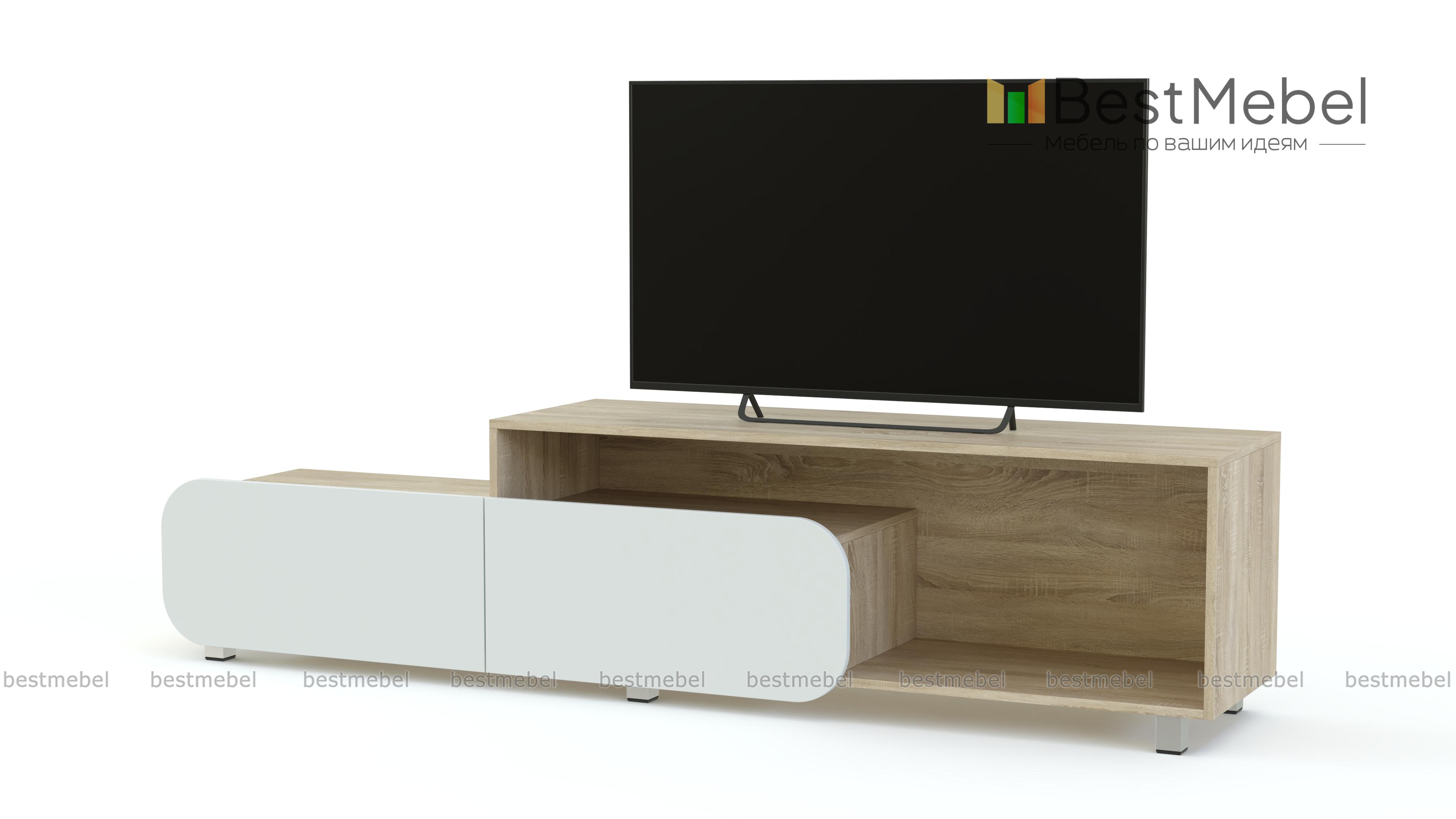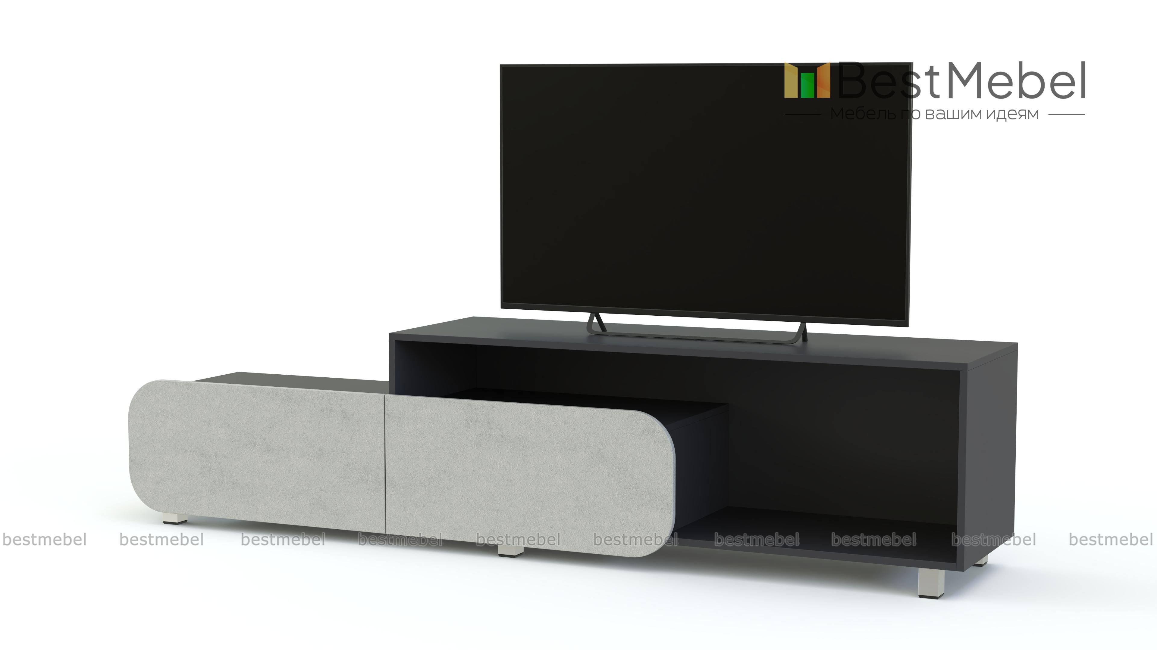 Тумба под ТВ Модерно 6.1 BMS - необычная модель в современном стиле для яркого и функционального интерьера. Вместительная тумба состоит из двух секций – открытой просторной полки и элемента с двумя выдвижными ящиками. Продуманная конструкция позволит эффектно разместить ТВ, книги, предметы декора и многое другое. Оптимальное цветовое сочетание корпуса и матовых фасадов вы сможете подобрать самостоятельно. Купить тумбу под ТВ Модерно 6.1 BMS по доступной цене приглашаем в наш интернет-магазин.
