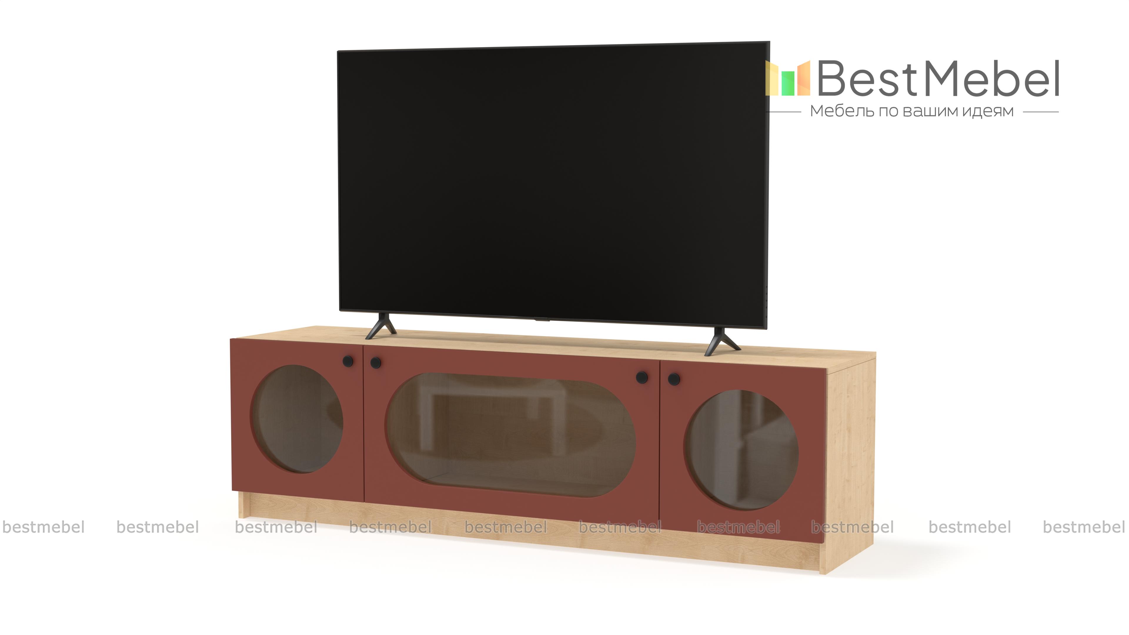 Тумба под ТВ Руди 8 BMS с витриной впишется в интерьеры современного дизайна. Её стильная особенность — контрастные дверцы из МДФ с округлыми вырезами и стеклом. Разделенная перегородками на три секции — одну большую в центре и две малые по бокам, широкая тумба обеспечит место для аудио- и видеоаппаратуры, любимых безделушек, журналов и книг. Купить тумбу под ТВ Руди 8 BMS, изготовленную по индивидуальным размерам, вы всегда сможете на сайте нашего интернет-магазина.