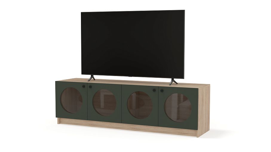Тумба под ТВ Руди 9 BMS стильно выглядит, надежна и функциональна. Дверцы двух распашных отделений с круглыми вырезами выполнены в глубоком темном оттенке из МДФ, корпус — прочная ламинированная плита с древесным рисунком. Любимые книги, пластинки и необходимые мелочи будет удобно хранить за дверцами со стеклом — так они меньше пылятся и всегда на виду. Купить тумбу под ТВ Руди 9 BMS в любом размере и оттенке из нашего каталога вы сможете на сайте интернет-магазина.