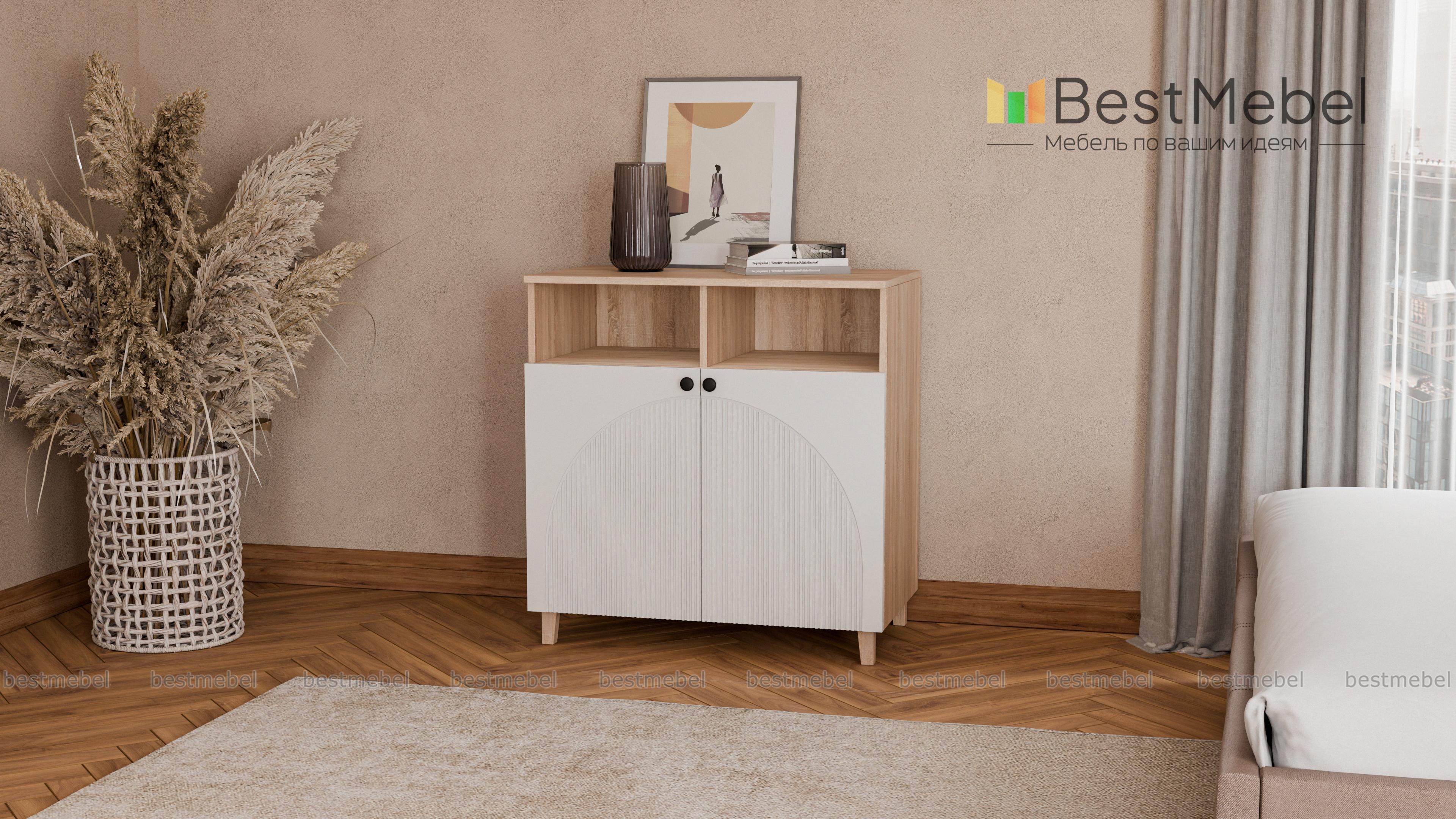Тумба Вивьен 2 BMS совместима как с предметами коллекции, так и с другой современной мебелью. Легкая конструкция тумбы с высокими ножками сочетается с актуальными оттенками и оригинальной рифленой отделкой фасада. Закрытое отделение с двумя дверцами и разделенная перегородкой ниша прекрасно подходят для хранения книг и множества мелочей, размещения интерьерных украшений. Купить тумбу Вивьен 2 BMS приглашаем в наш интернет-магазин с выбором фурнитуры и цвета по каталогу.