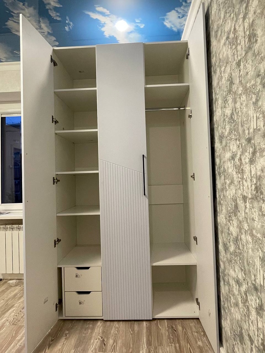 Отличный шкаф. Очень понравился. Цвет - нежно голубой. По заказу консультировала менеджер Ксения в Сочи. Показала образцы цвета, подсказала по компоновке, другим нюансам. Все прошло на отлично. Заказ нужен был после проведения ремонта. С менеджерами по телефону согласовали дату. Хотя были готовы отгрузить через 2 недели, по нашей просьбе отложили на 1,5 месяца. В оговоренный срок все привезли. Набрал по сборке, договорились на мой выходной в удобное время. Пришел, все собрал. Все отлично.