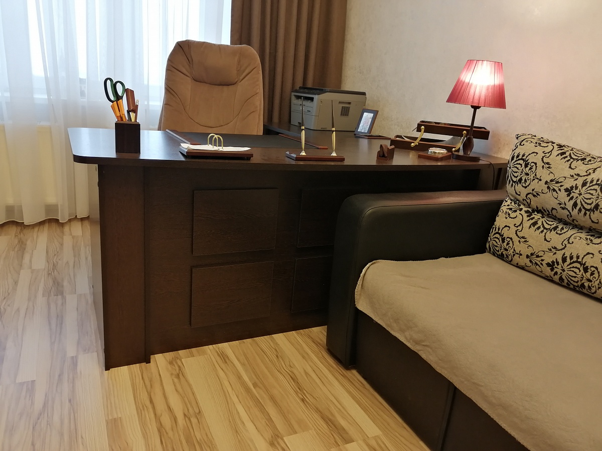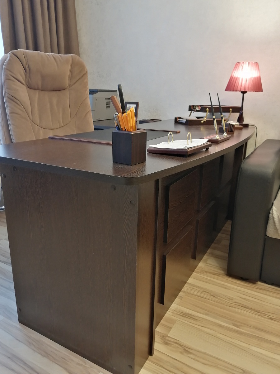 Покупал в Бестмебели стол руководителя Монти BMS.  Цвет фасадов и корпуса - Венге Цава. Пользуюсь около месяца, поэтому отзыв уже взвешенный, без первых эмоций.Понравилось, что стол можно скомпоновать именно в тех размерах и той комплекции, которые нужны. Все это делается в интуитивно понятном калькуляторе на сайте. Конкретно для этой модели есть 3D визуализация. Выбранный мной размер - 1900*750*800. Скругленые столешницы. Доводчики на нариковых направляющих. Кромка 0,4 мм. Крепеж стандартный. Заказ оформили, все обговорили. Срок от момента заказа до доставки получился чуть меньше 3 недель. Привезли и донесли до квартиры. Понравилось, что за это время отзванивались раз 5. Дополнительно уточняли какой вынос и ширина приставки к столу предпочтительнее для меня; сообщали на каком этапе изготовления/доставки сам стол.Собрал сам часа за 2. Собирал сам, помощь не трубуется. Инструкция может не сильно информативна, потому что деталей много, изображение мелкое, в объеме, поэтому перекрывает различные части, но на каждой детали есть наклейка с названием и размерами. Первый раз такое вижу, удобно и опять-таки интуитивно понятно. Все присадки находятся на своих местах! Это, наверное, первая мебель, которую я собирал и ничего не сверлил и не "допиливал" руками))Брака не было, на одной кромке присутствовал небольшой скол, но не на лицевой части. Фурнитура была вся в наличии, даже был какой-то пакет явно от другого стола, но это мелочи, главное, что для моего всего хватило.Так в целом, стол выглядит и ощущается весьма качественно. Ничего нигде не гуляет, не скрипит, все закрывается. Стоимость нет смысла писать потому, что все меняется и через месяц она может быть не актуальна. Плюс, у каждого стола в разных комплектациях она отличается. На момент покупки для стола с такими размерами и с таким наполнением она была самой адекватной из примерно трах десятков, которые я пересмотрел. В общем и целом, стол к покупке рекомендую.