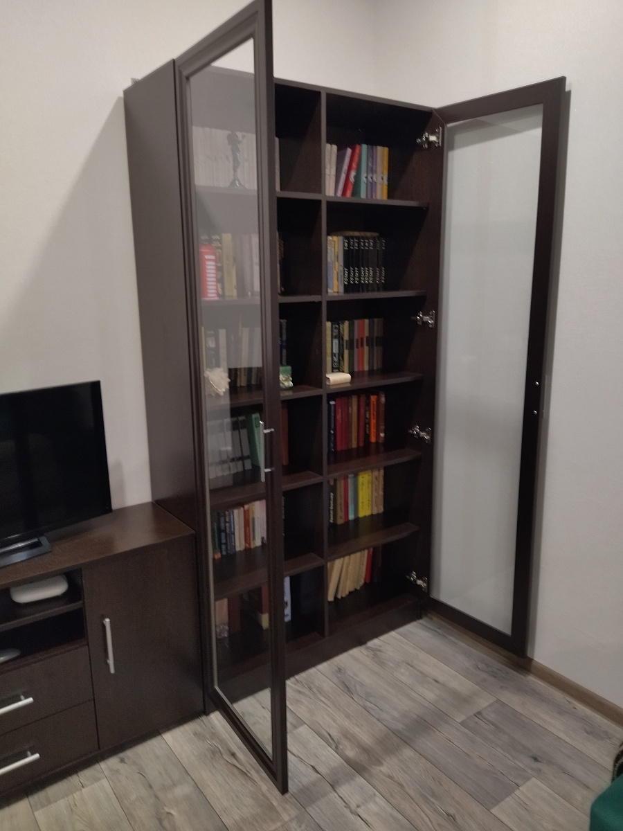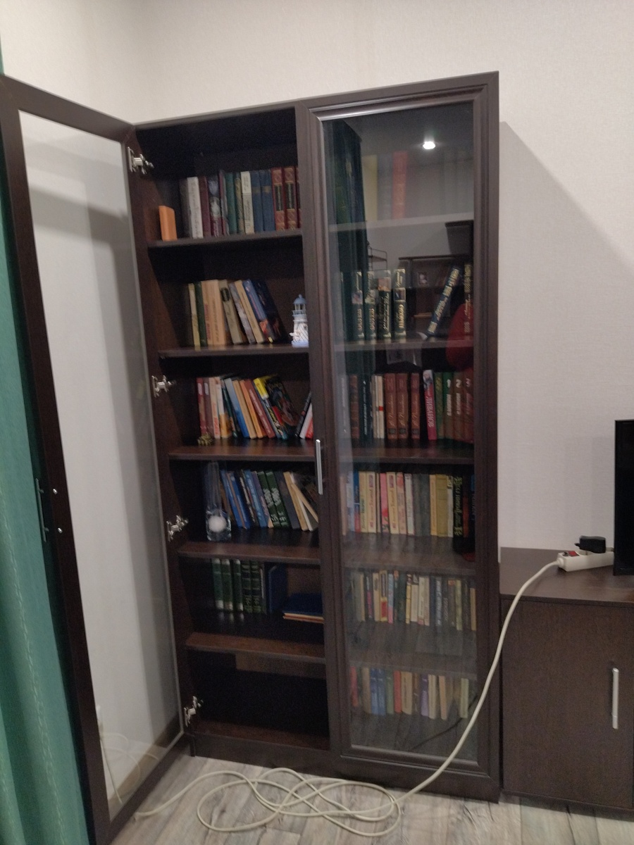 Решили обновить книжный стеллаж. Понравился книжный шкаф Карлос 006 BMS, откорректировали размер, петли и цвет. Сделали заказ №1074569 - два шкафа и тумба. Очень удобные шкафы: глубина, высота и количество полок. Стеклянные дверцы выполнены очень хорошо. Инструкция понятная, при сборке не возникло трудностей. Спасибо конструкторам и производству Best Mebel!