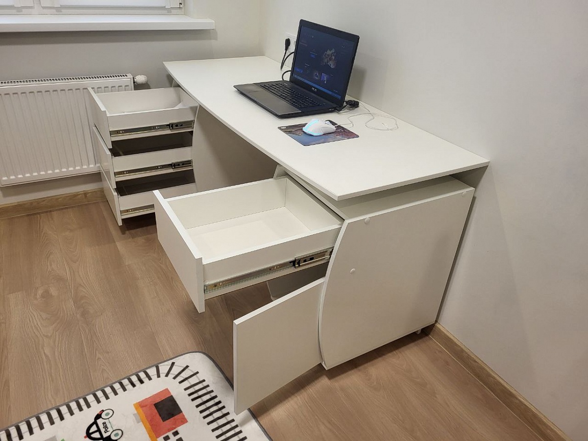 Замечательный стол, очень интересный по дизайну, вместительный, цена/качество отличные. Удобно, что можно выбрать подходящие размеры, цвет, фурнитуру. Покупкой очень доволен! Заказ 00000827298