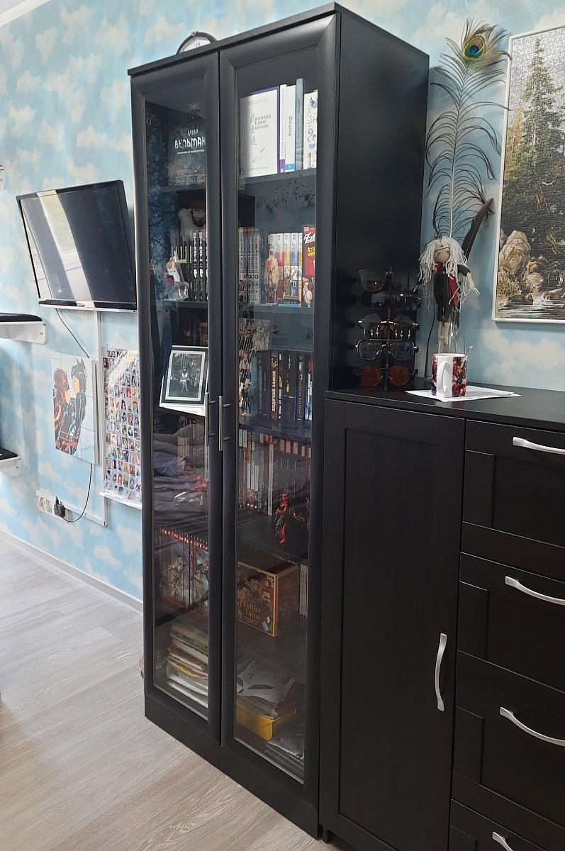 Заказ 00000803677, изделие Шкаф книжный 2 №1 BMS (800х2100х400)Шкаф мне понравился. Все детали сделаны аккуратно, засверловка в нужных местах. Две полки являются ребрами жесткости, так что шкаф стоит прочно, к тому же конструкция предусматривает возможность подвешивания на стену. Единственное что расстроило это отсутствие сзади снизу среза под плинтус, пришлось делать его самостоятельно, чтобы поставить шкаф вплотную к стене. Зато порадовало качество боковых стенок, после срезки угла лобзиком получился ровный край без сколов на поверхности. Все детали имеют наклейку с номером, указанным в инструкции по сборке, что заметно ее упрощает.Сделали и доставили очень быстро, особенно в сравнении с другой мебелью из разных магазинов. К примеру комод заказывала из другого магазина и его готовности я ждала месяц, тогда как шкаф приехал через неделю после оформления заказа.