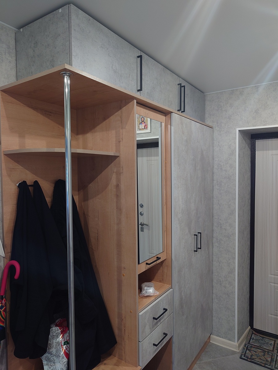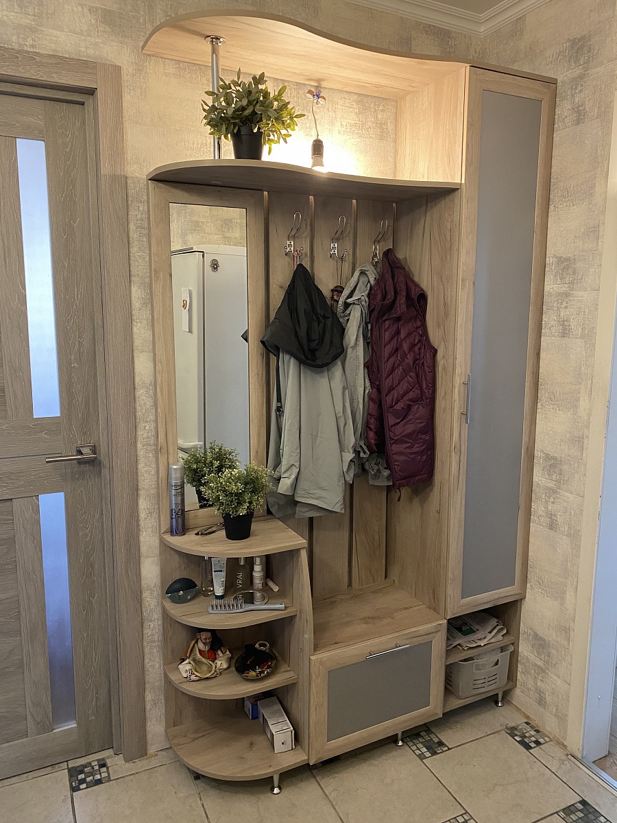 Бюджетный вариант прихожей, что было для нас очень приятно. Для небольшого корридора самое то.