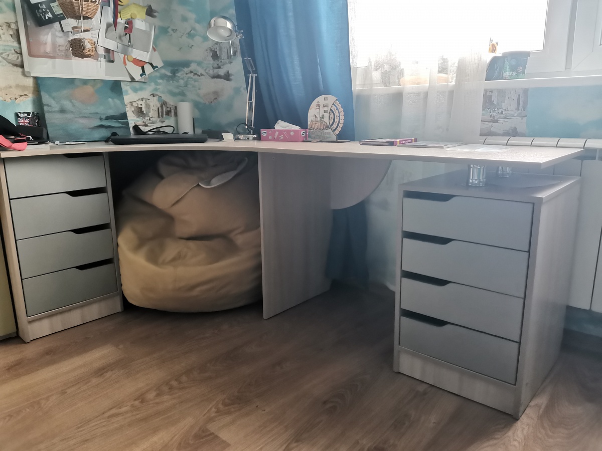 Заказ 00000797492, изделие Ин Проект стол №000092807 (2000х720х1200)Приехали в салон, посмотрели варианты фасадных элементов, сразу определились с комплектацией, затем  уже по телефону внесли корректировки и запустили в производство. Ждали буквально несколько дней, доставка быстрая, всё было аккуратно упаковано. Собрали с сыном неспеша, за несколько дней небольшой конструктор для взрослых. Детям понравился, у каждого своя тумбочка и рабочая зона.