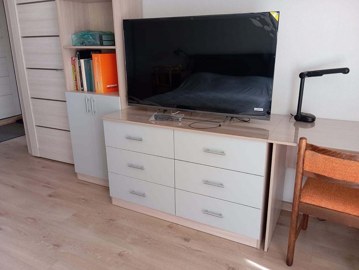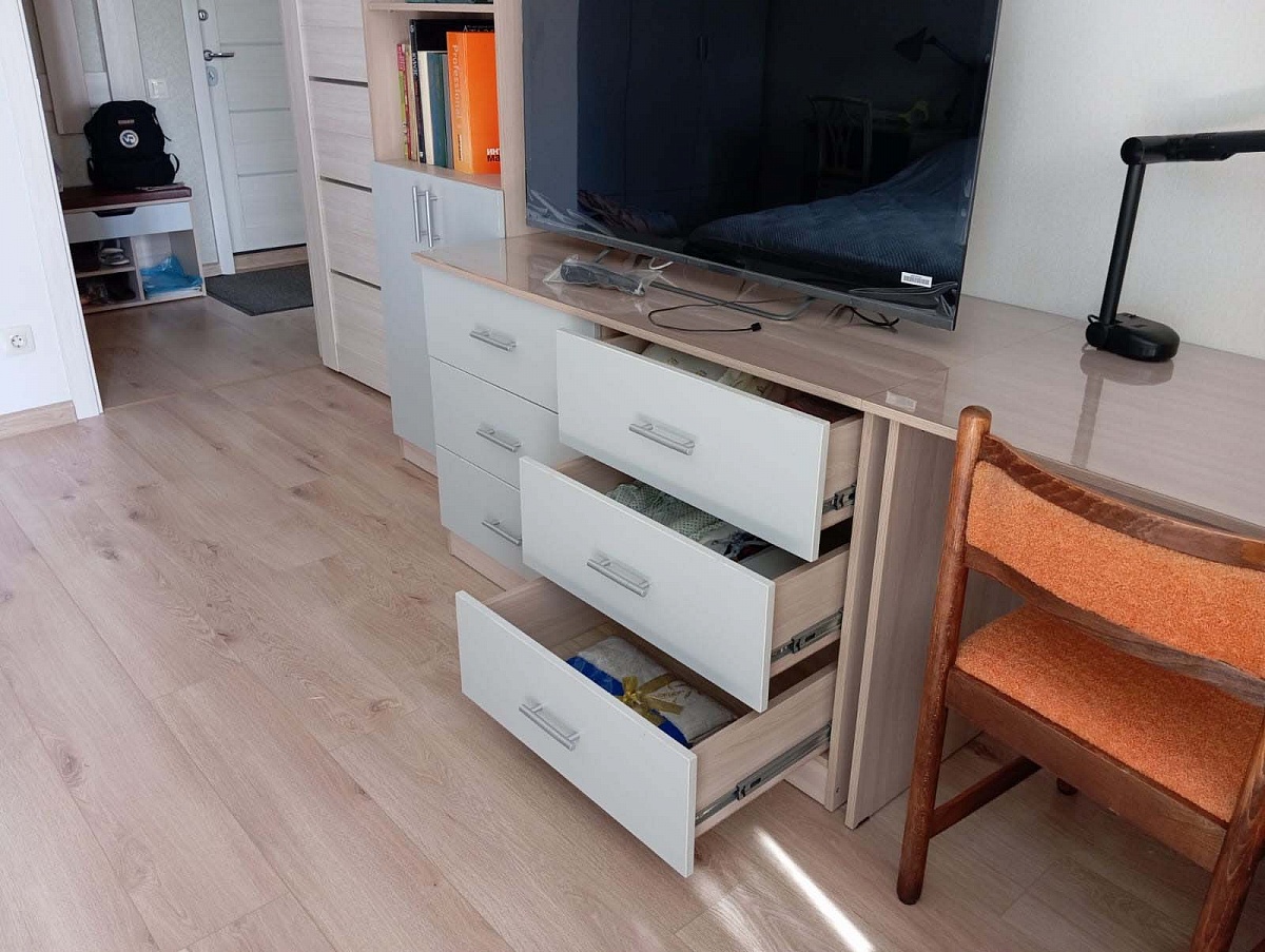 Заказ №891627 от 05.10.2023. Комод нужен был глубже, чем стандарт. Изготовитель посоветовал разделить на два ряда. В итоге я довольна - удобно пользоваться, больше ящиков. Радует возможность указывать в заказе индивидуальные размеры. Цвет Ясень Шимо Светлый/ Серый в комплект с другой мебелью.  00000522962   Комод Мальвина BMS (1200х750х600)