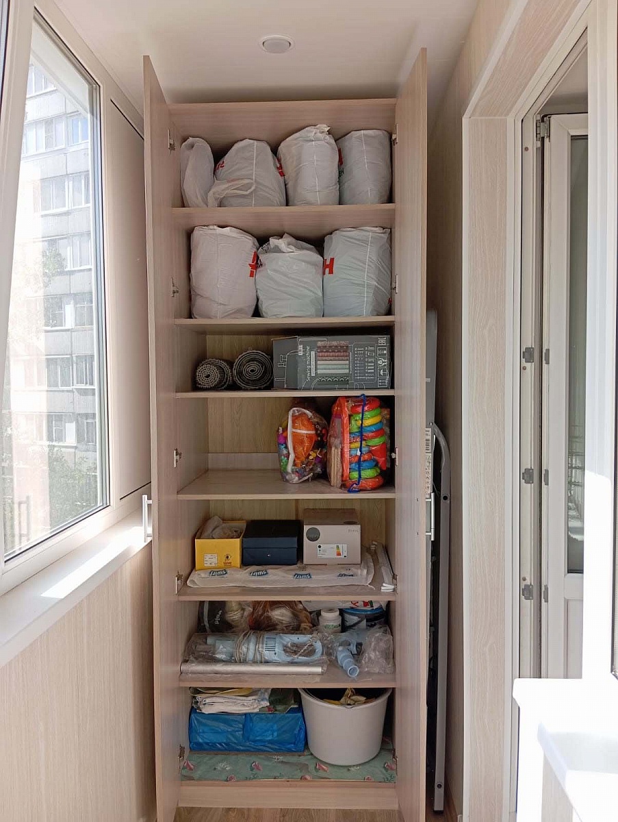 Заказ №891627 от 05.10.2023. Заказала два шкафа на лоджии по индивидуальным размерам.  Цвет Ясень Шимо Светлый. В шкафах добавила опции - дополнительные полки и перфорация через каждые 5см - очень удобно и хорошо, что есть такая возможность. Благодарна за работу фирмы на всех этапах. Отдельное спасибо сборщику, который качественно собрал шкафы в ограниченном пространстве. 00000522960 Шкаф Эконом 4 BMS (800х2400х550) и (800х2400х650)