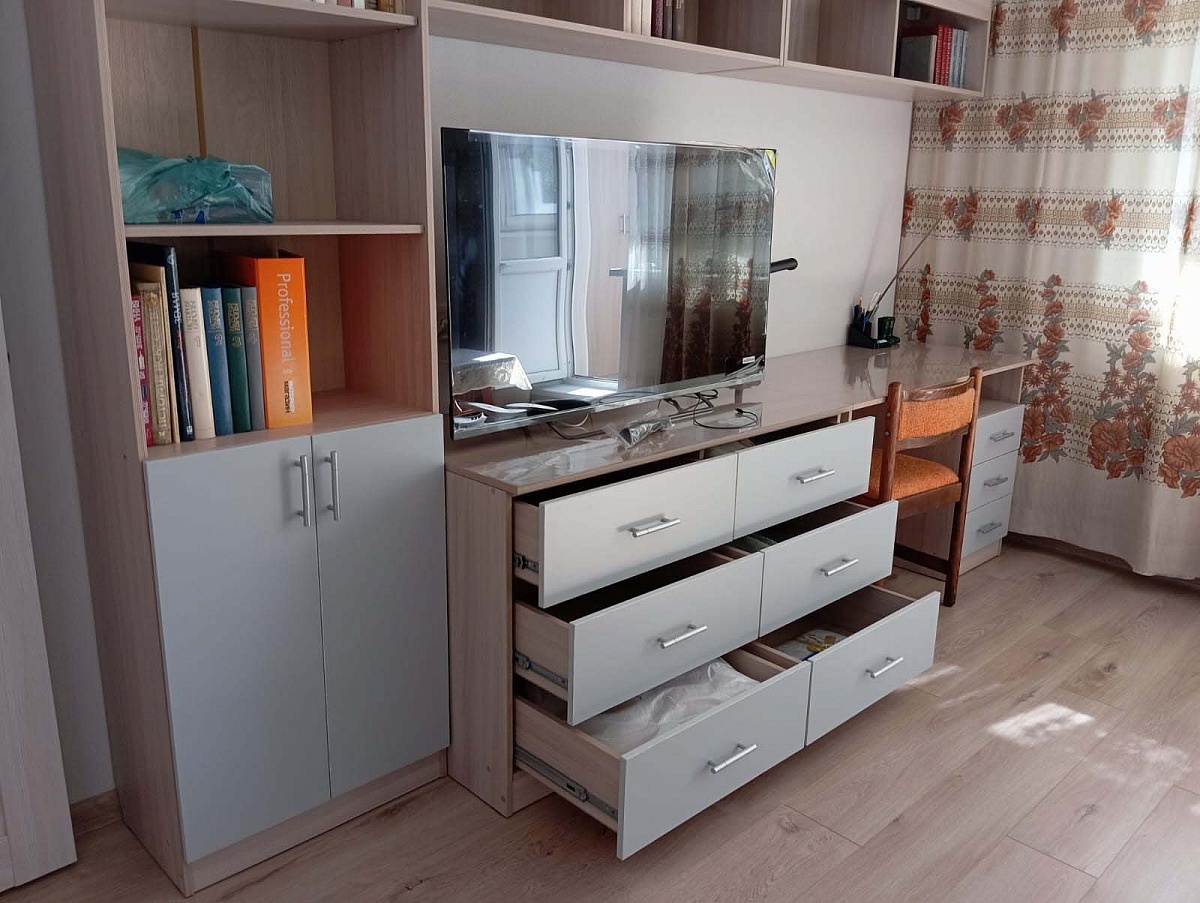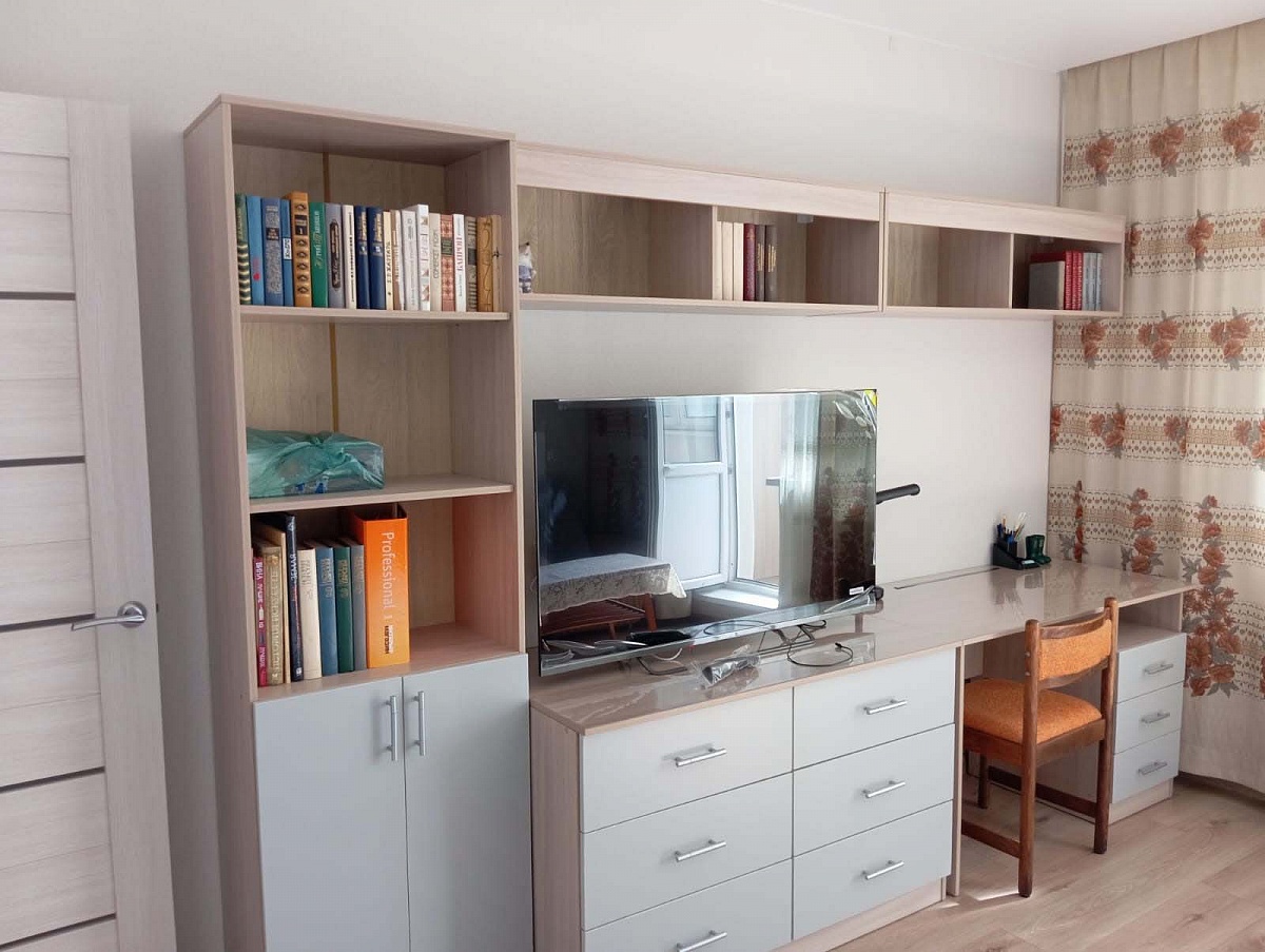 Приобрели данную стенку в августе 2024 года. По нашему эскизу увеличили в размере тумбу под телевизор и добавили книжный шкаф. Всю работу произвели в кротчайшие сроки. Доставили вовремя. Стенка вместительная, удобная, светлая. Выглядит современно. Комната не кажется перегруженной с ней.  Очень удачное приобретение!