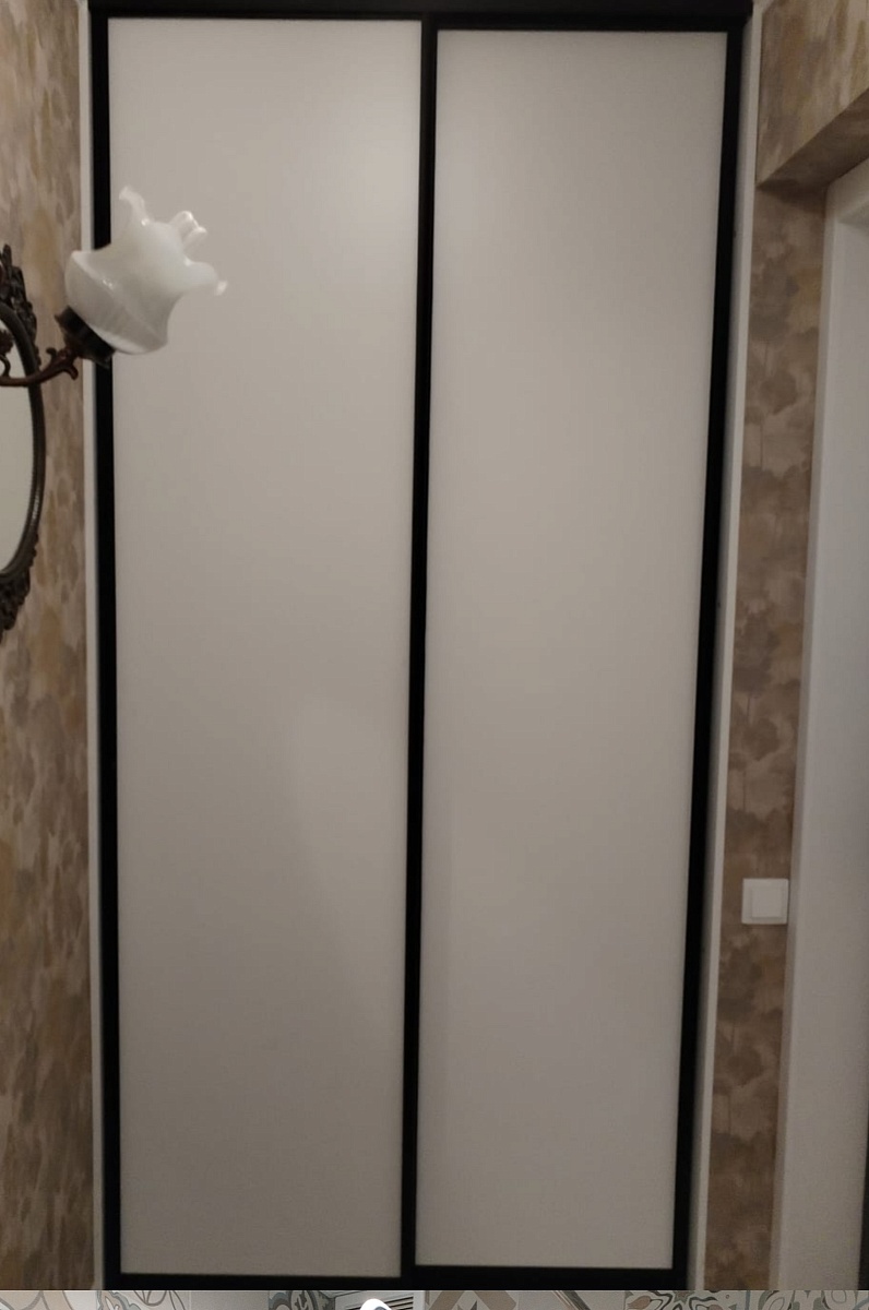Прекрасный шкаф. Сделали точно по оговоренным размерам. Выполнили просьбу о стеклянных полках!  Жаль, что изначально не предусмотрена корзина для белья, но удалось купить подходящую по размеру и вставить в нижнюю часть шкафа. При доставке проверили целостность компонентов и стекла. Сборка проблем не вызвала.